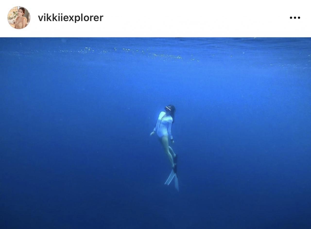 ล่าสุดสาว วิกกี้ ได้ออกมาโพสต์ภาพในวันที่เธอลงไปดำน้ำใต้ท้องทะเล ลงบนอินสตาแกรมส่วนตัว พร้อมกับเขียนแคปชั่นสั้นๆ ว่า "Throwback the marine runway ไว้รอไปกับเบบี๋น้อยนะ" บอกเลยว่าถ้าใครได้เห็นภาพนี้แล้วต้องพูดชมเป็นเสียงเดียวกันว่า วิกกี้ สวยมาก ราวกับหลุดออกมาจากตัวการ์ตูนเงือกน้อยเมอร์เมดใต้ท้องทะเล