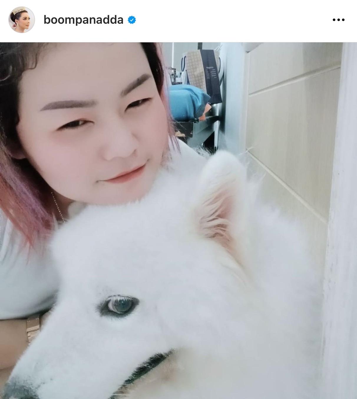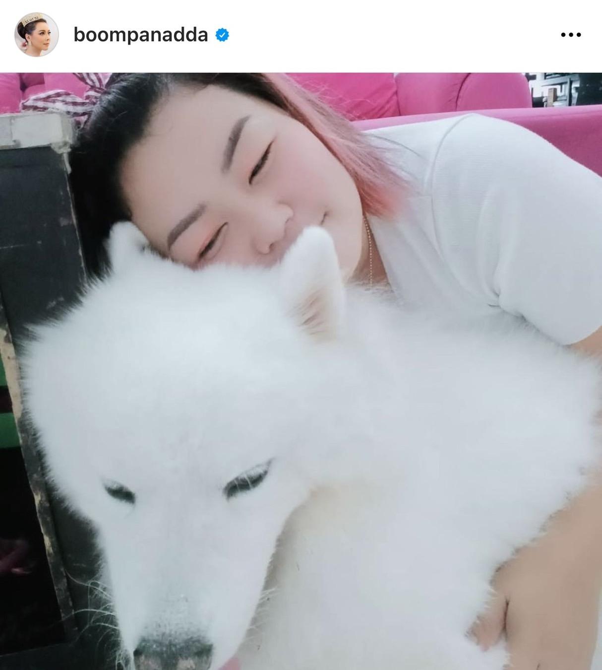 "มีแฟนคลับส่งมาให้ดูว่าจะมีคนเข้าใจผิดว่าเป็นคุณแม่บุ๋มหรือเปล่า? เพราะที่บ้านเลี้ยงหมาและอยู่แถวรามอินทรา ก็เลยอยากจะบอกว่า ไม่มีทาง! แม้ว่าที่บ้านจะเลี้ยงน้องหมาอุดมสมบูรณ์มาก แต่ที่อุดมสมบูรณ์ไม่แพ้กันก็คือคนที่เลี้ยงน้องหมา ชื่อพี่นวล อยู่มาสองปีกว่าแล้ว