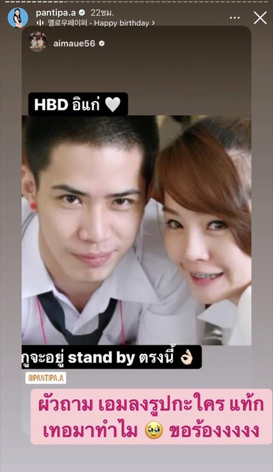 งานนี้คุณแม่สุดแซ่บอย่างปุ้มปุ้ย เมื่อเห็นภาพวันวานก็รีบรีโพสต์ทันที พร้อมทั้งเขียนข้อความตอบกลับสุดพีกว่า “กุว่าแล้วววว อีเอมมม อีเลววววววววววว อีเลววงวววว ผัวถามเอมลงรูปกะใคร แท็กเธอมาทำไม ขอร้องงงงง”
