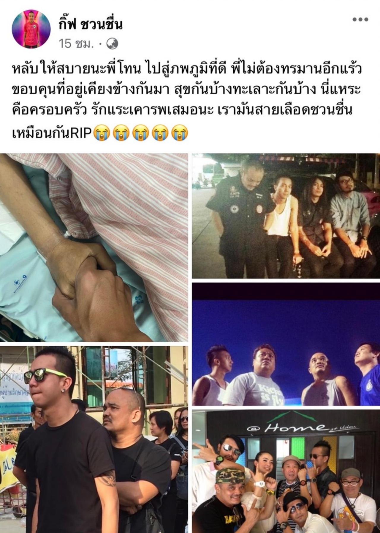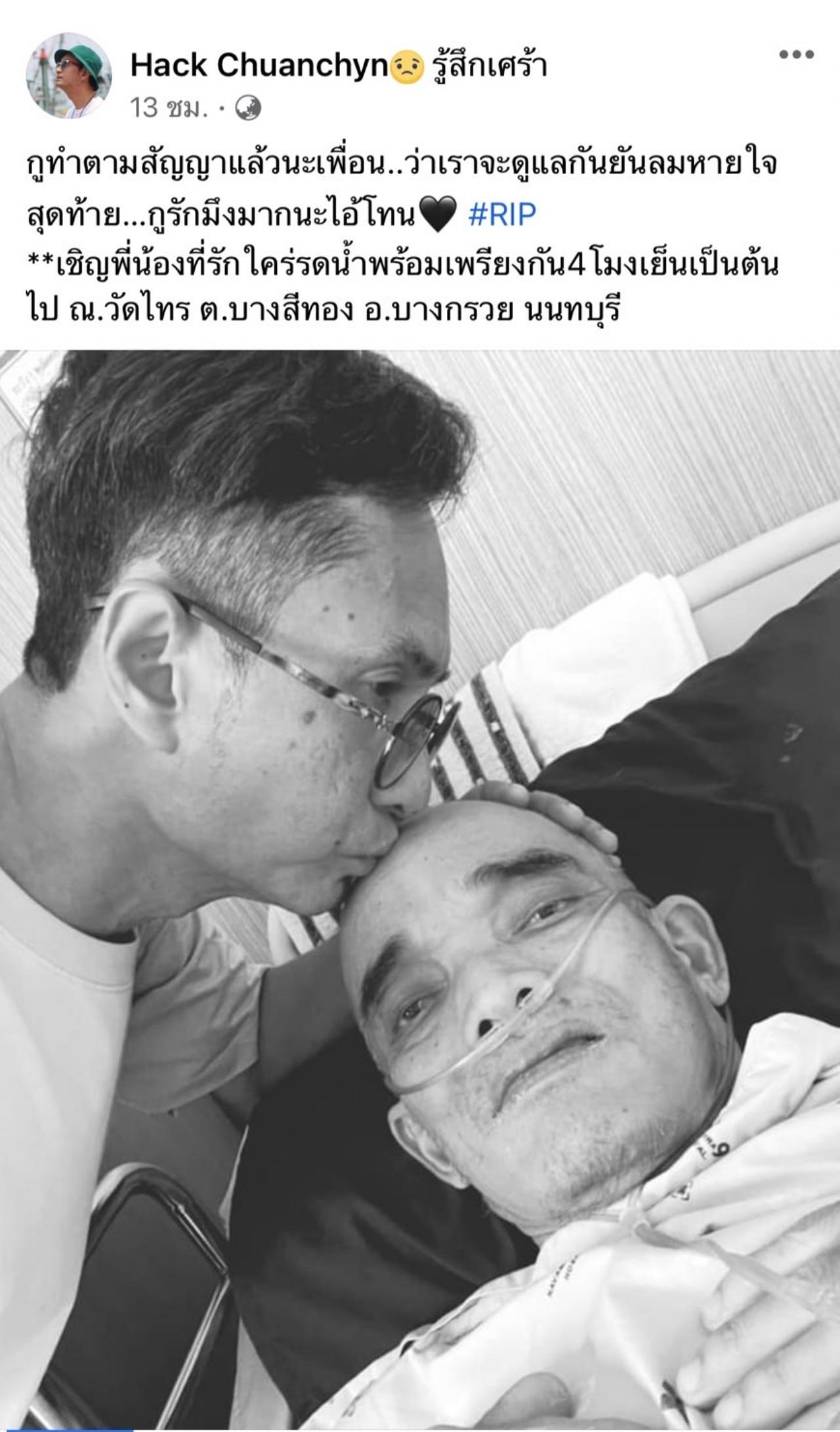 ด้าน แฮ็ค ชวนชื่น โพสต์ว่า "กูทำตามสัญญาแล้วนะเพื่อน..ว่าเราจะดูแลกันยันลมหายใจสุดท้าย…กูรักมึงมากนะไอ้โทน #RIP **เชิญพี่น้องที่รักใคร่รดน้ำพร้อมเพรียงกัน4โมงเย็นเป็นต้นไป ณ.วัดไทร ต.วัดชลอ อ.บางกรวย นนทบุรี"