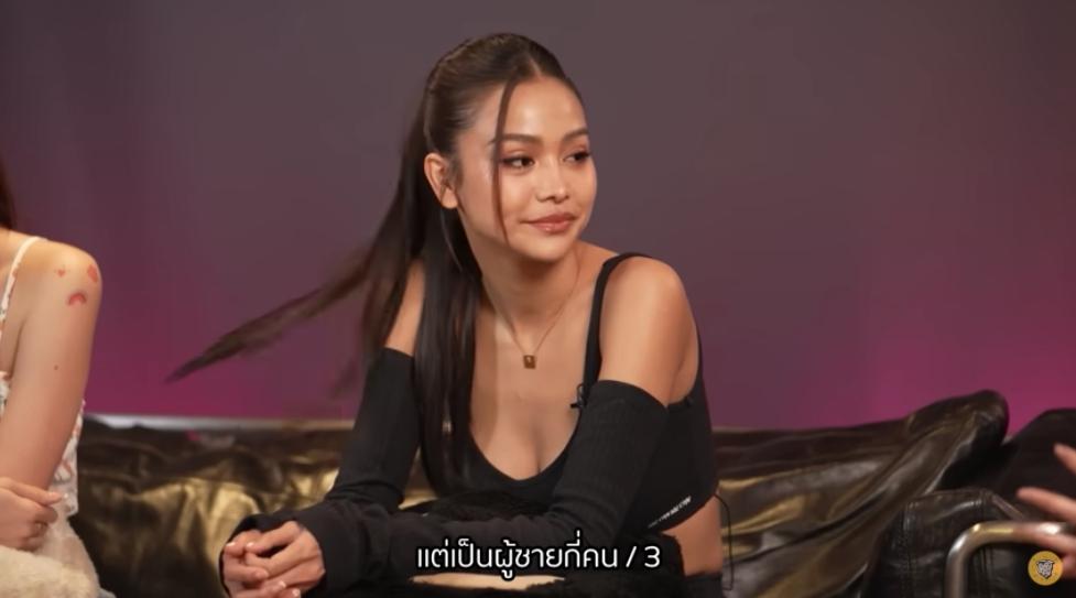 "ความรักของเราก็เป็นฟีลแบบป๊อปปี้เลิฟ ซึ่งเราเคยมีแฟนมาแล้ว 4 คนเป็นผู้ชาย 3 คน และอีกหนึ่งเป็นทอม ซึ่งตอนระหว่างทางที่เราคบกันก็เคยมีเรื่องหนักหนาสาหัสมาเหมือนกัน ก็จะเป็นความรักช่วงที่เราเริ่มโตเป็นสาว ซึ่งกับคนนี้เรารักมากก็คิดว่าคนนี้คือคนสุดท้ายในชีวิตแล้วก็คือรักมาก แต่ว่าก็มีปัญหาทั่วไป โดนนอกใจบ้าง มีโลกหลายใบบ้าง หนักสุดก็เรื่องของการทำร้ายร่างกาย