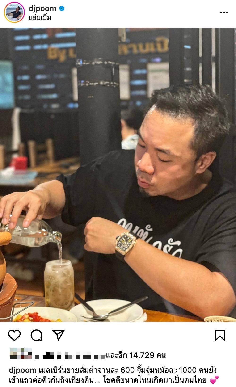 หลังจากเจอทัวร์ลงหนักเป็นจำนวนมากกับดีเจคนดังอย่างหนุ่ม ดีเจภูมิ ภูมิใจ ตั้งสง่า ที่ก่อนหน้านี้ได้โพสต์ภาพที่เจ้าตัวกำลังนั่งรับประทานอาหารที่ร้านอาหารแห่งหนึ่ง พร้อมระบุแคปชั่นว่า "เมลเบิร์นขายส้มตำจานละ 600 จิ้มจุ่มหม้อละ 1,000 คนยังเข้าแถวต่อคิวกันถึงเที่ยงคืน โชคดีขนาดไหนเกิดมาเป็นคนไทย"