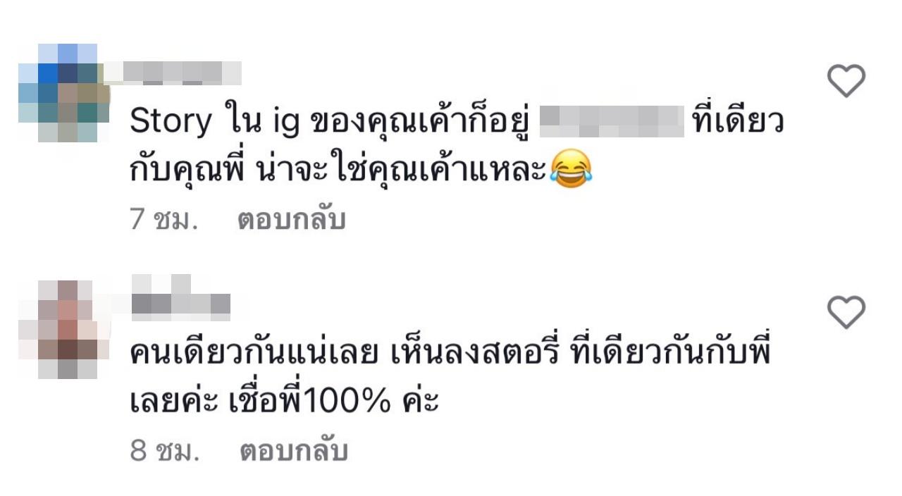 ซึ่งหลังจากที่ชาวเน็ตได้เห็นรูปอาหารในคลิปดังกล่าว ก็ได้เข้ามาคอมเมนต์แสดงความคิดเห็นว่า "Story ใน ig ของคุณเค้าก็อยู่ ... ที่เดียวกับคุณพี่ น่าจะใช่คุณเค้าแหละ, คนเดียวกันแน่เลย เห็นลงสตอรี่ที่เดียวกันกับพี่เลยค่ะ เชื่อพี่ 100% ค่ะ, ไปส่องสตอรี่ ... มา ใช่นางเลย ที่เดียวกัน คาแรกเตอร์ในละครเป็นยังไง ชีวิตเหมือนกันเลยเหรอเนี่ย นึกภาพออกเลยอะ"