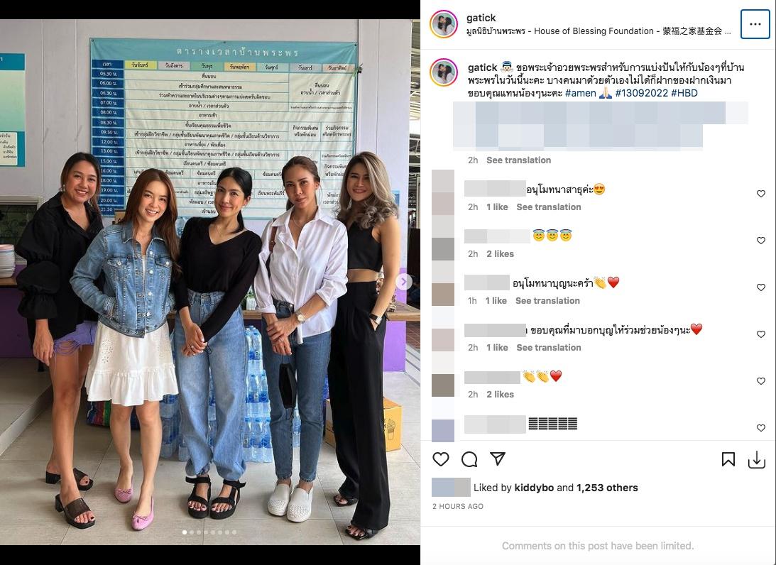 โดย กระติก อิจศรินทร์ โพสต์ภาพบรรยากาศตอนที่ชวนเพื่อนๆ ไปร่วมทำบุญวันเกิดที่มูลนิธิบ้านพระพร พร้อมทั้งเขียนข้อความว่า “ขอพระเจ้าอวยพระพรสำหรับการแบ่งปันให้กับน้องๆ ที่บ้านพระพรในวันนี้นะคะ บางคนมาด้วยตัวเองไม่ได้ก็ฝากของฝากเงินมา ขอบคุณแทนน้องๆนะคะ #amen #13092022 #HBD” และแท็กไปที่ไอจีของเพื่อนๆ ที่ร่วมบุญกัน