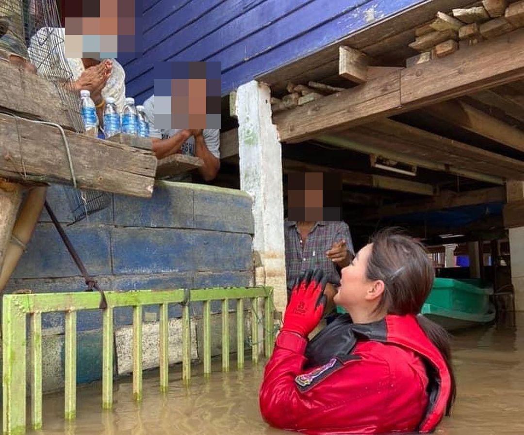 ส่วนตัวนะ! ถ้านั่งเรือได้ไปทุกบ้านเราก็อยากจะทำแบบนั้นเพราะขนของได้เยอะและไม่เหนื่อยทีมงาน แถมทำงานเร็วกว่าด้วย แต่ในเมื่อมีคนรอความช่วยเหลืออยู่ไม่ว่าจะลำบากแค่ไหนเราก็ต้องลุยค่ะ แล้วพี่ขอลงมือทำไม่ขอพูด ยกเว้นต้องมานั่งอธิบายเรื่องการทำงาน เพราะมันมีผลกับภาพรวมของทีมงานทั้งหมด ในฐานะประธานพี่จำเป็นต้องชี้แจงค่ะ ขอบคุณที่รับฟังนะคะ เคลียร์จบทำงานต่อค่ะ”.