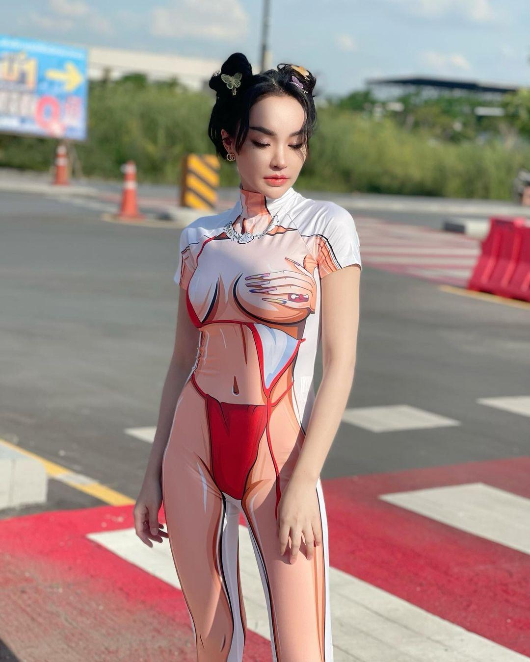 ประกอบกับชุดที่เป็นแบบรัดรูป บวกกับท่าโพสตอนถ่ายรูปและคลิปวิดีโอตอนเดินข้ามถนนทำให้ลุคนี้ดูแซ่บขึ้นไปอีก ลุคนี้แซ่บพริกยกสวนไปเลย แม้จะไม่ได้ใส่ชุดว่ายน้ำจริงๆ ก็ตาม.