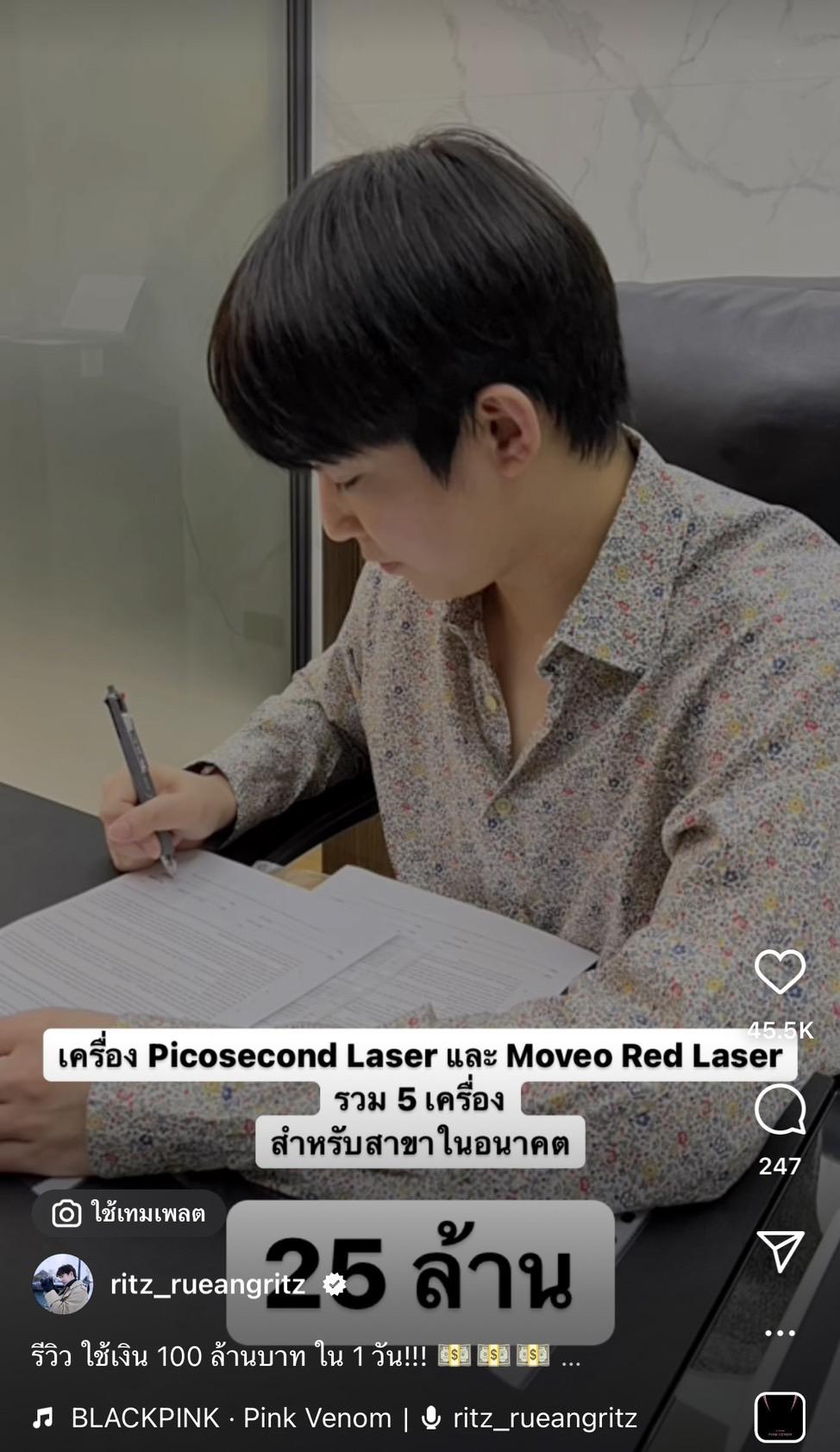 - เซ็นสัญญาซื้อเครื่องมือแพทย์ Picosecond Laser และ Moveo Red Laser รวม 5 เครื่อง สำหรับสาขาในอนาคต 25 ล้าน
