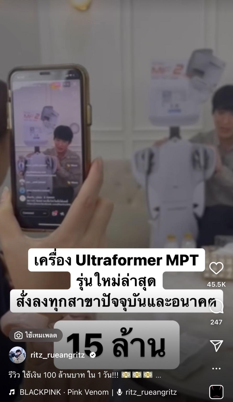 - ซื้อเครื่องมือแพทย์ Ultraformer MPT รุ่นใหม่ล่าสุด สั่งลงทุกสาขาของคลินิก 15 ล้าน