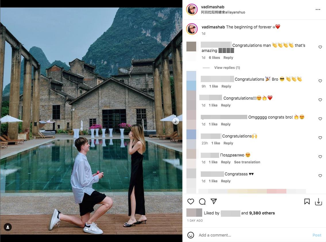 ซึ่งหลังจากที่คบหาดูใจมานานนับปี ล่าสุดวาดิมก็ตัดสินใจขอเรนนี่แต่งงานเรียบร้อยแล้ว ซึ่งวาดิมก็ได้โพสต์ภาพบรรยากาศตอนขอแฟนสาวแต่งงาน และเขียนแคปชั่นสั้นๆ “The beginning of forever” โดยมีเพื่อนๆ รวมถึงชาวเน็ตเข้ามาแสดงความยินดีหลายข้อความ.