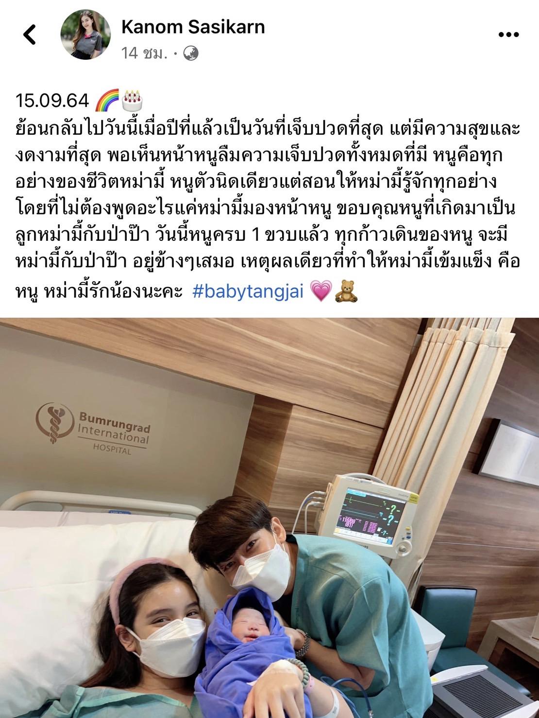 หนูคือทุกอย่างของชีวิตหม่ามี้ หนูตัวนิดเดียวแต่สอนให้หม่ามี้รู้จักทุกอย่างโดยที่ไม่ต้องพูดอะไรแค่หม่ามี้มองหน้าหนู ขอบคุณหนูที่เกิดมาเป็นลูกหม่ามี้กับป่าป๊า วันนี้หนูครบ 1 ขวบแล้ว ทุกก้าวเดินของหนู จะมีหม่ามี้กับป่าป๊า อยู่ข้างๆ เสมอ เหตุผลเดียวที่ทำให้หม่ามี้เข้มแข็ง คือหนู หม่ามี้รักน้องนะคะ #babytangjai".