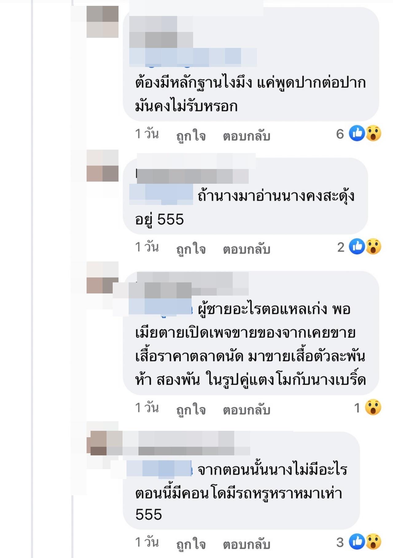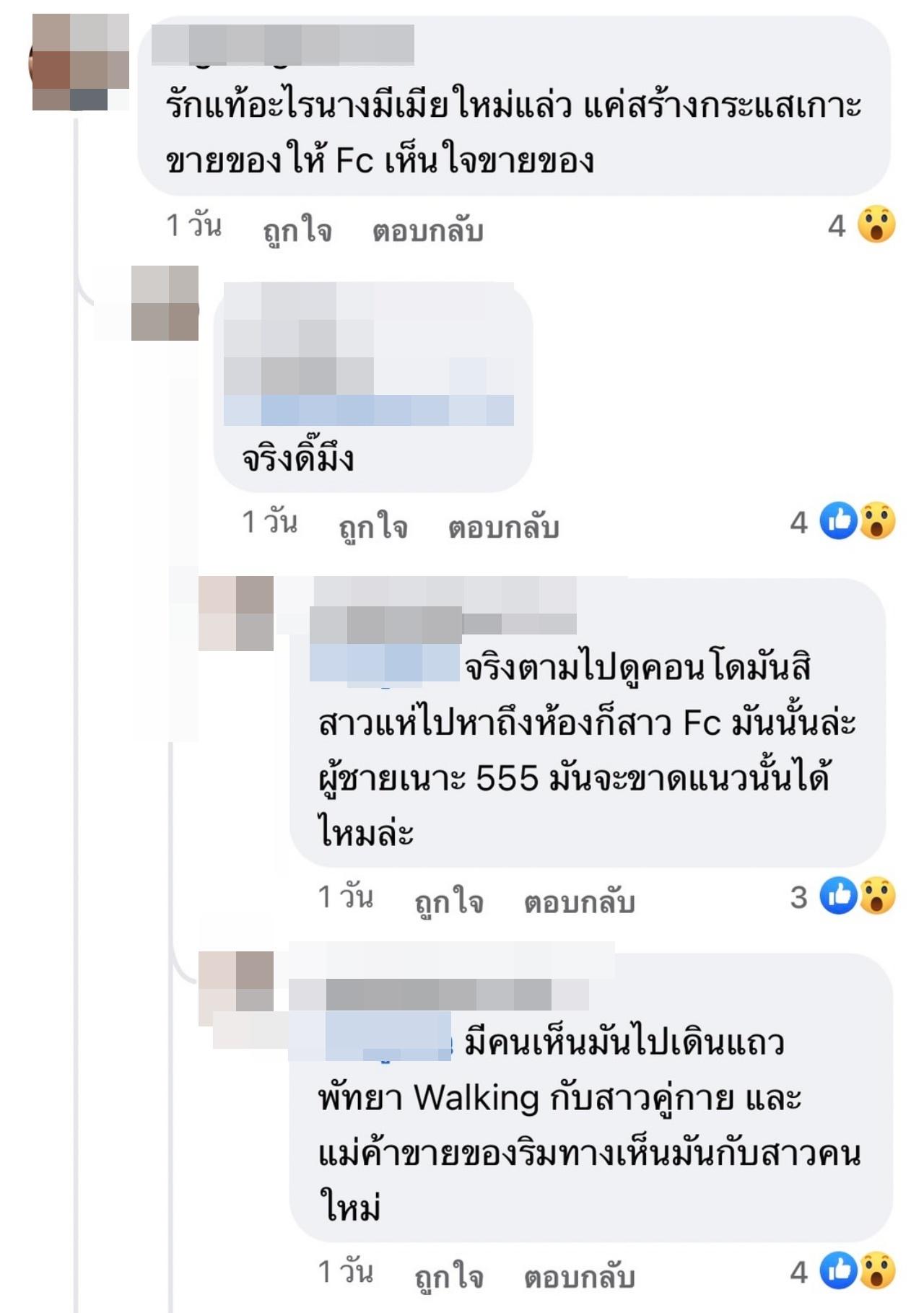 โดยชาวเน็ตคนดังกล่าวไปคอมเมนต์ว่า "รักแท้อะไร นางมีเมียใหม่แล้ว แค่สร้างกระแสเกาะขายของให้ Fc เห็นใจขายของ" ซึ่งก็มีคนเข้ามาคอมเมนต์แสดงความคิดเห็นจากต่อจากคอมเมนต์ดังกล่าวมากมายว่า
