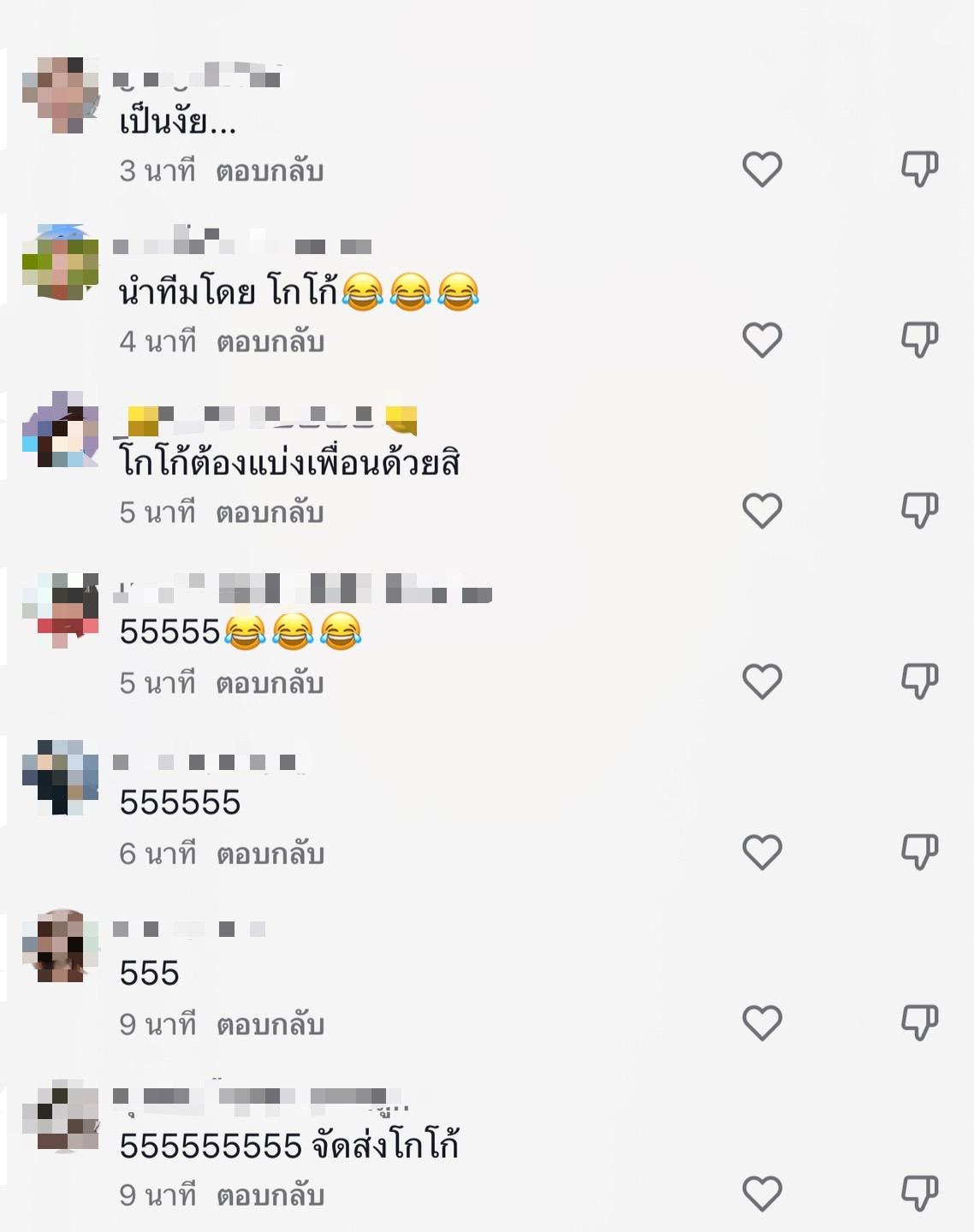 ทำเอาชาวเน็ตแห่เข้ามาคอมเมนต์กันเป็นจำนวนมาก เช่น "โรงงานจะผลิตทันมั้ย 5555, น่ารัก, จัดโปร 2 แถม 1 เลยพี่น้ำ, โอ๊ยยยยหยุด 55555, คาดว่าโรงงานน่าจะผลิตไม่ทัน, โกโก้แบ่งเพื่อนด้วยสิ, นำทีมโดยโก้โก้, 5555 จัดส่งโกโก้" เป็นต้น