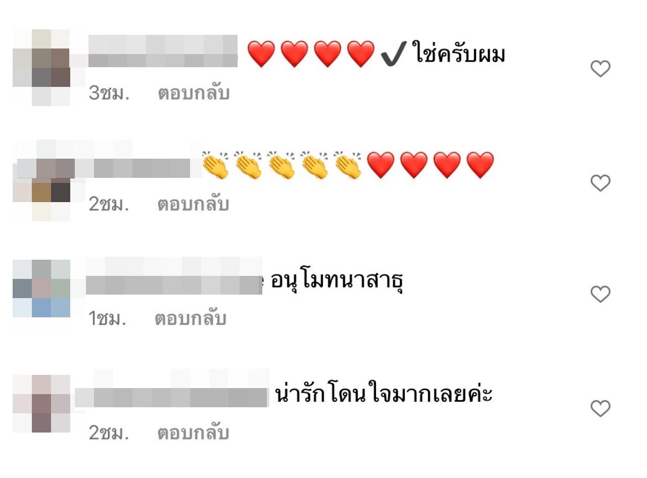 หลังจากที่ โม อมีนา โพสต์รูปและแคปชั่นดังกล่าวไป ก็มีชาวเน็ตเข้ามาคอมเมนต์แสดงความคิดเห็นว่า "ปัง, LOVEแคปชั่นมากๆๆๆ, อยากให้คนบางคนคิดได้แบบนี้บ้าง, ใช่ครับผม" บ้างก็คอมเมนต์เป็นอีโมจิรูปหัวใจสีแดง บ้างก็คอมเมนต์เป็นอีโมจิรูปปรบมือให้