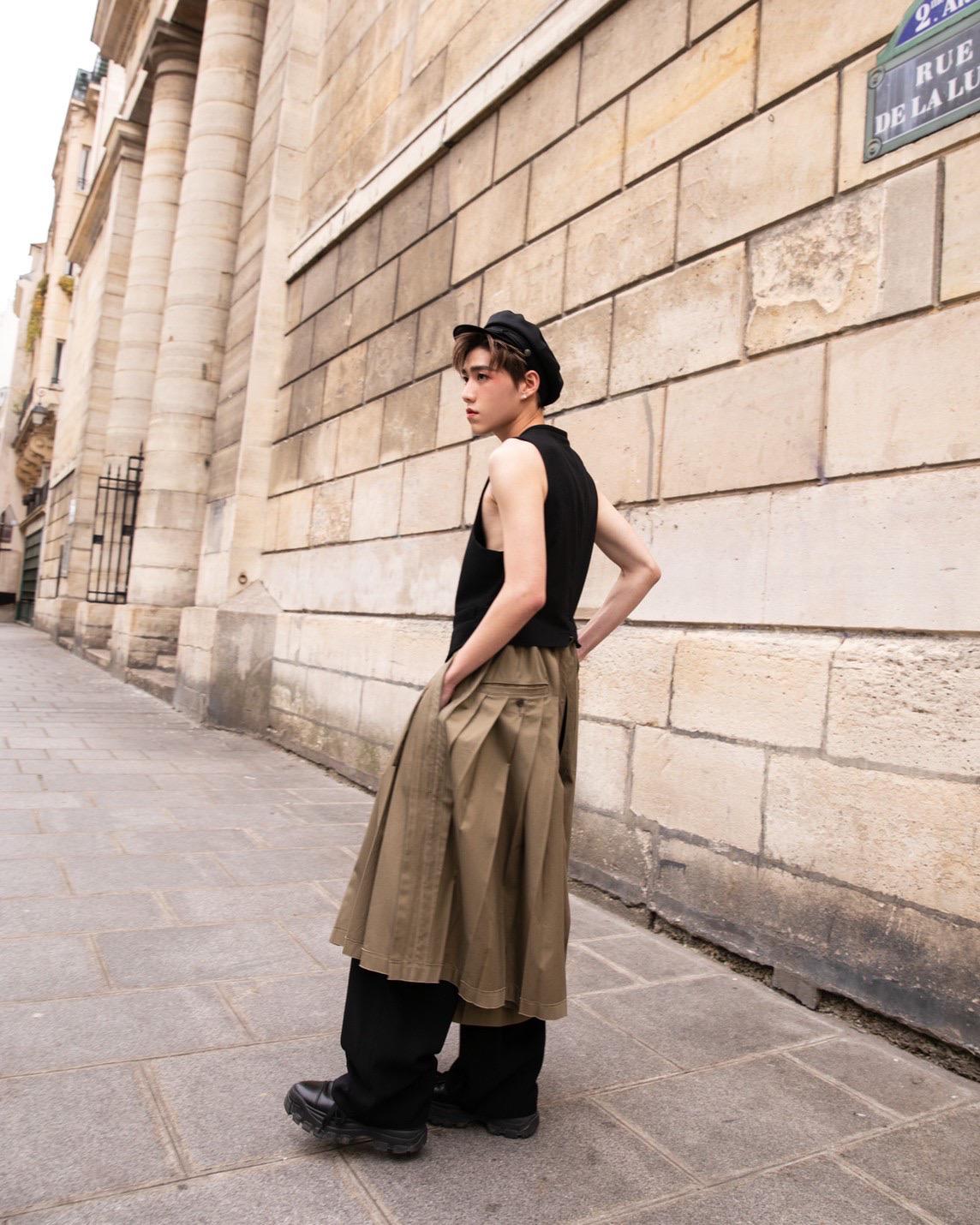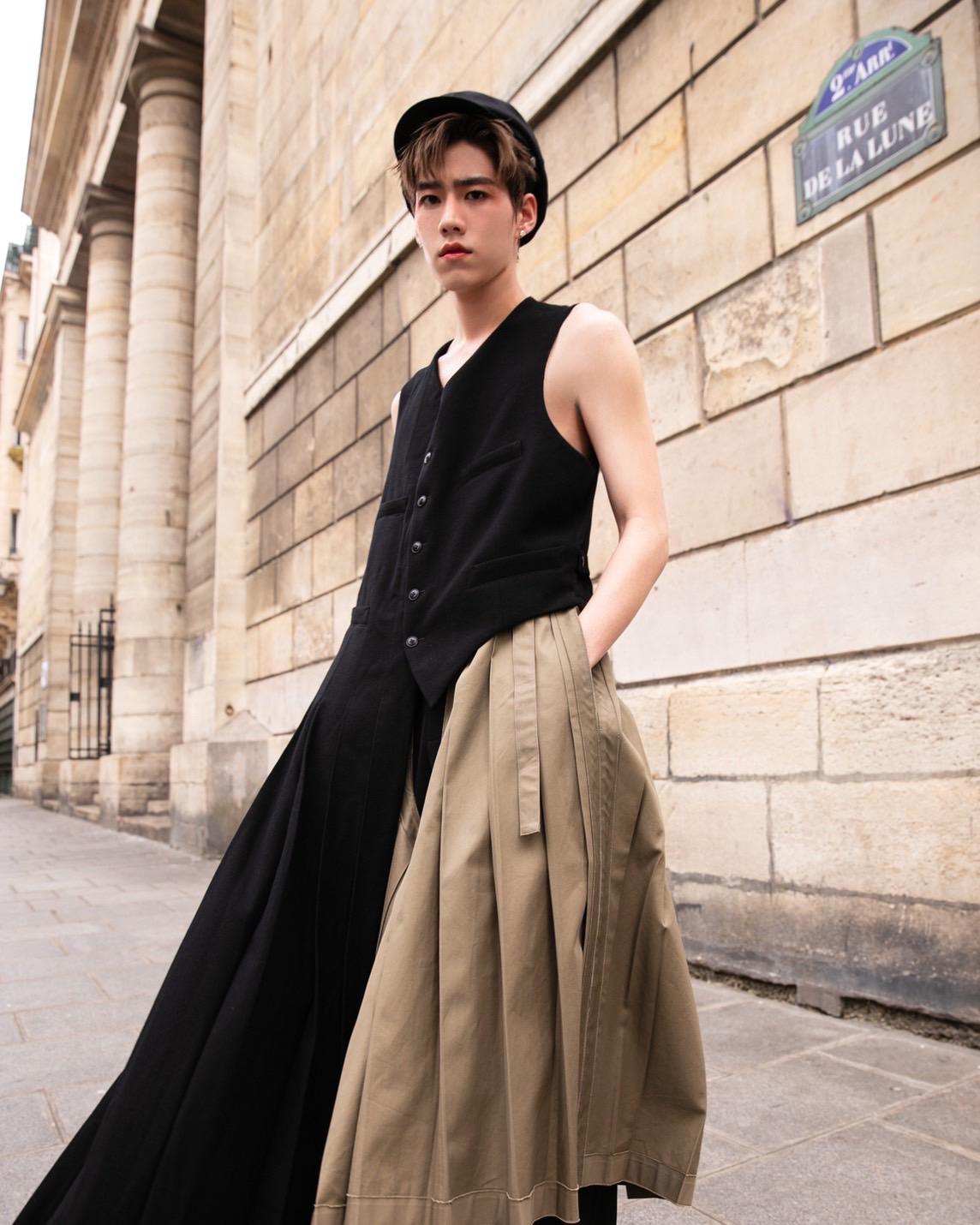 งานนี้หนุ่มคนดังของเราก็ไม่ทำให้แฟนๆ ต้องผิดหวังกับลุคใหม่โชว์หุ่นสับ มาในลุคคูลๆ เสื้อกั๊กแขนกุดสีดำดีเทลชายยาว พร้อมมีกิมมิกเลเยอร์กับกางเกงโอเวอร์ไซส์จีบขาบานสีเขียว และหมวกทรง Newsboy ทั้งหมดจากแบรนด์ Yohji Yamamoto เรียกได้ว่ามิกซ์แอนด์แมตช์กันได้อย่างสุดลงตัว.