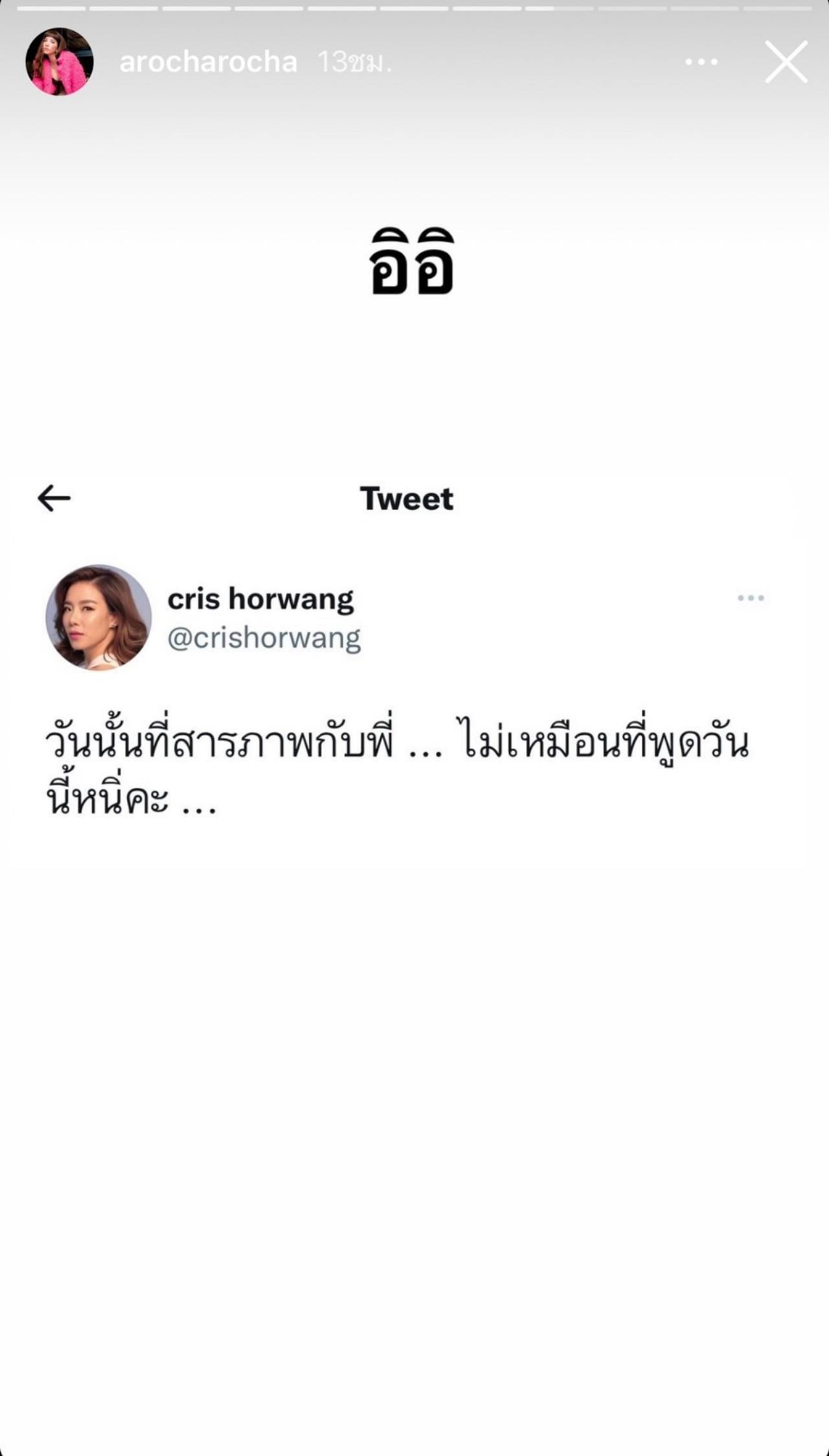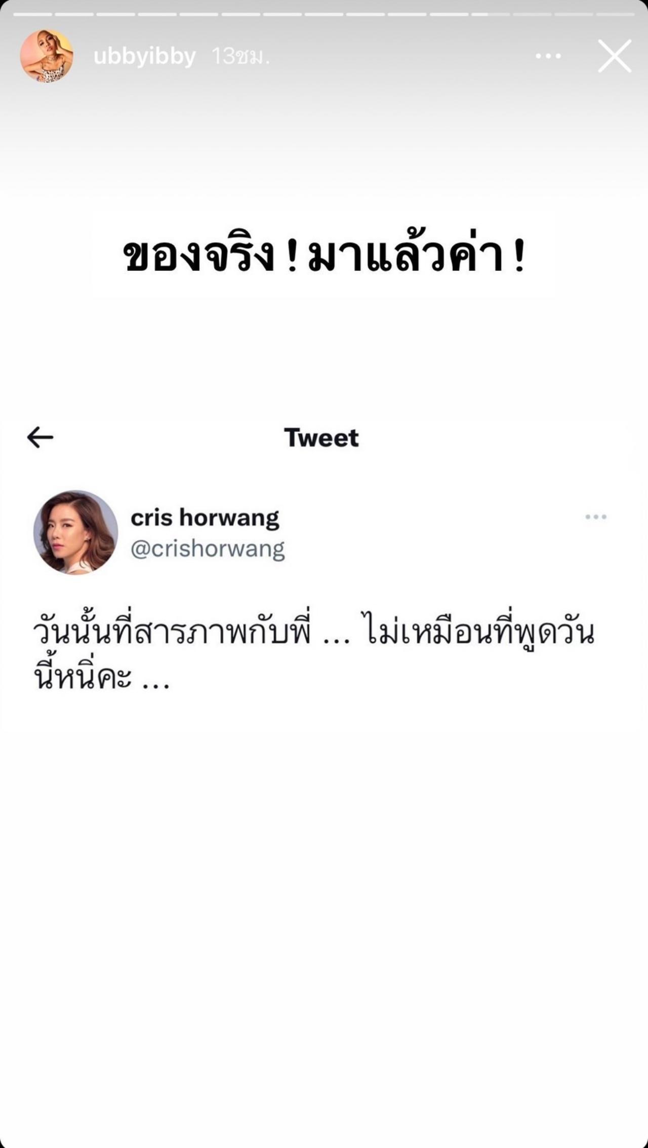 ทางด้าน คริส หอวัง พี่สาวของพลอย ก็ได้ออกมาทวีตข้อความผ่านทางทวิตเตอร์ของตัวเองว่า “..วันนั้นที่สารภาพกับพี่..ไม่เหมือนที่พูดวันนี้หนิคะ...”และนอกจากนี้ บรรดาเพื่อนๆ ของ พลอย หอวัง ก็พร้อมใจกัน แคปข้อความในทวีตของ คริส และนำมาโพสต์ทางไอจีสตอรี่อีกด้วย ซึ่งแต่ละคนก็ได้เขียนแคปชั่นประกอบภาพเอาไว้ว่า “ตอแห_จับได้สุดๆ, รู้อยู่แก่ใจ!!!, ของจริง! มาแล้วค่า!, อิอิ, ปึงงงงง” ซึ่งประเด็นที่ คริส หอวัง ทวิตถึงจะหมายถึงเรื่องอะไรคงต้องรอฟังจากปากเจ้าตัวอีกครั้ง.