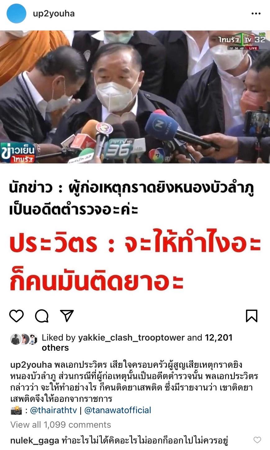 เป็นประเด็นร้อนที่ในโลกโซเชียลวิพากษ์วิจารณ์อย่างหนัก สำหรับกรณีที่ พลเอกประวิตร วงษ์สุวรรณ รองนายกรัฐมนตรี ตอบคำถามสื่อมวลชนกรณีอดีตตำรวจก่อเหตุกราดยิงที่ศูนย์พัฒนาเด็กเล็ก อบต.อุทัยสวรรค์ อ.นากลาง จ.หนองบัวลำภู โดยนักข่าวถามว่าผู้ก่อเหตุเป็นอดีตตำรวจ และพลเอกประวิตรตอบว่า “จะให้ทำไงอะ ก็คนมันติดยาอะ”