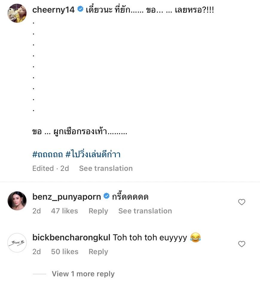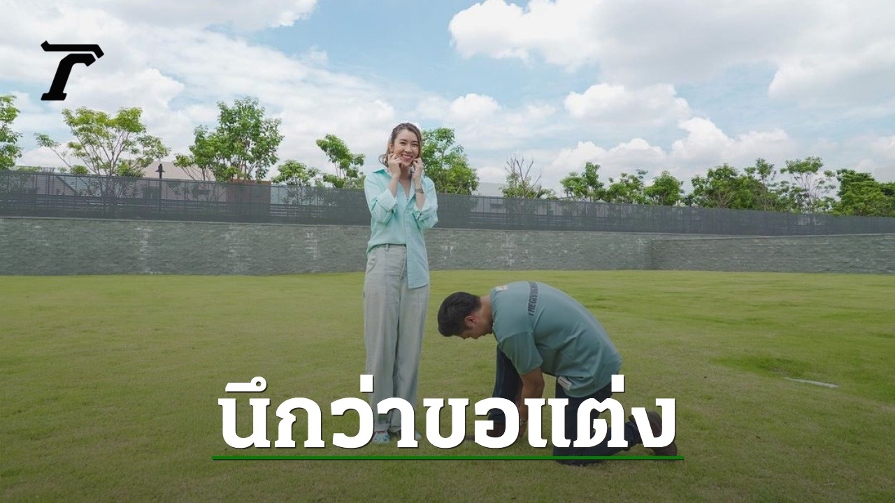 แต่พอดูภาพชัดๆ พร้อมกับแคปชั่นที่เชียร์เขียนไว้ว่า “เดี๋ยวนะ ที่ยัก…… ขอ... … เลยเหรอ?!!! . . . . . . . . . ขอ … ผูกเชือกรองเท้า……… #ถถถถถ #ไปวิ่งเล่นดีก่าา” เป็นอันว่าชัดเจน แค่ผูกเชือกรองเท้านะจ๊ะ ยังไม่มีซีนขอแต่งงานแต่อย่างใด