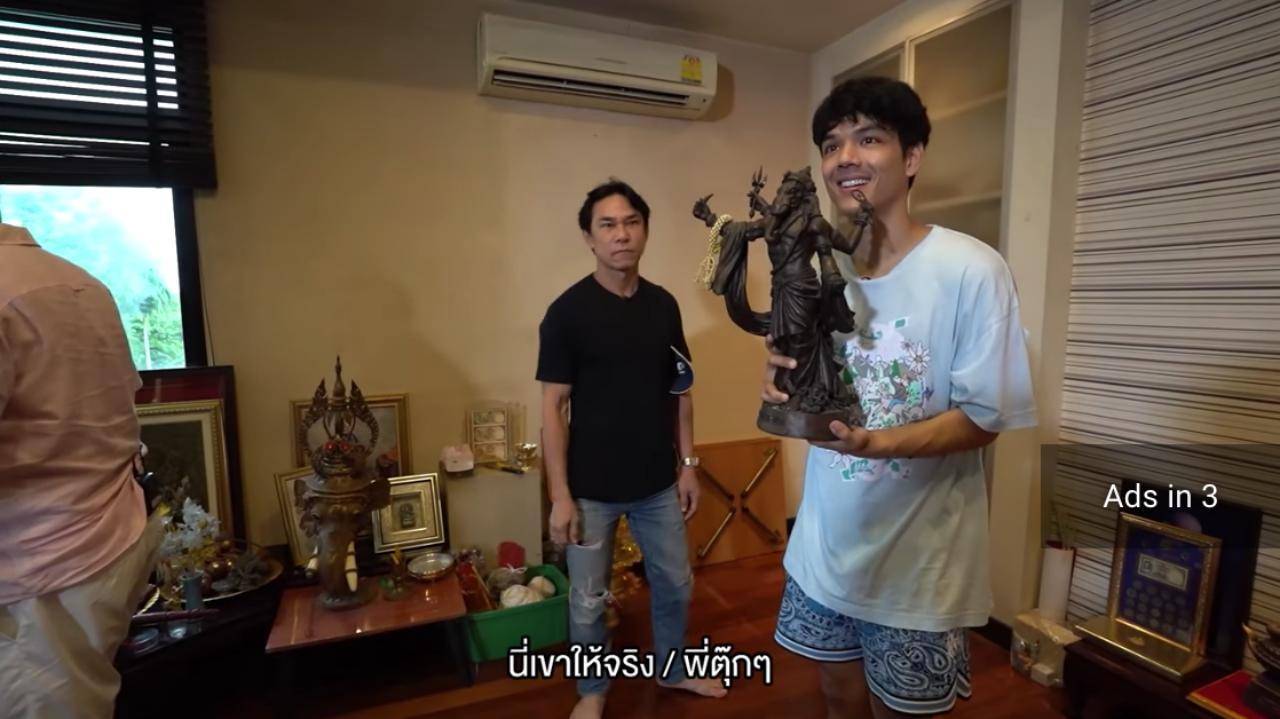 โดยเฉพาะห้องพระของอาเป็ดที่ใหญ่และอัดแน่นไปด้วยสิ่งศักดิ์สิทธิ์ที่เจ้าตัวบูชา ซึ่งในห้องนี้ นิกกี้ สะดุดตากับองค์พระพิฆเนศเพราะปางเหมือนกับองค์ที่อยู่หน้าเวิร์คพอยท์ ซึ่งอาเป็ดบอกว่านี่คือของเวิร์คพอยท์ องค์นี้ตอนเช่ามาประมาณ 1 แสน และนี่คือองค์ที่เช่ามาแพงที่สุดแล้ว เป็นรุ่นแรกและทำที่วัดพระแก้ว