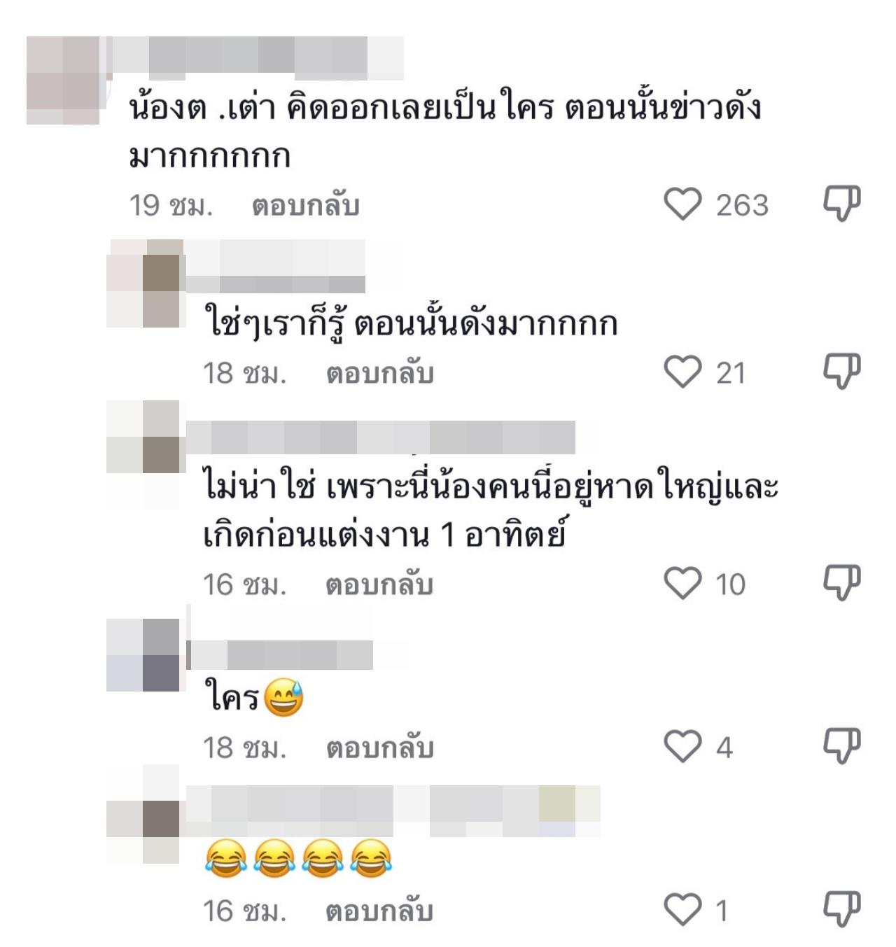 เพราะเหตุนี้จึงทำให้ชาวเน็ตต่างพากันแห่ทายว่า น้อง ต.เต่า ที่ทำให้เอมี่เกือบล่มงานแต่งเป็นใครอย่างมากมายในโลกโซเชียล อาทิ “ข้อสอบง่ายมาก, นักร้อง?, น้อง ต.เต่าไหน เอ๋ ต.เต่าไหนน้า คุ้นๆ, อ้อ น้องกระตุก”
