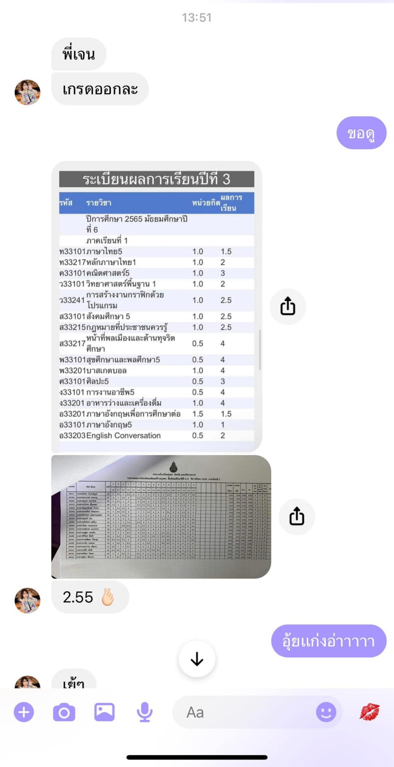 โดย เจนนี่ ได้โพสต์ภาพข้อความดังกล่าว และเขียนว่า "ไม่คาดหวังว่าต้องได้เกรดเท่าไหร่ แค่น้องเรียนจบในแต่ละเทอมก็คือเก่งมากๆ แล้ว จัดไป 1 รางวัลให้น้องสาวคนเก่ง ฉลองเกรดออก"