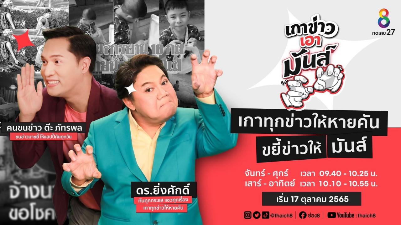 เริ่มจากรายการแรกอย่าง “เกาข่าว เอามันส์” รายการที่จะหยิบกระแสร้อนแรงทุกเหตุการณ์ มาตีประเด็น ข่าวไหนที่ว่าร้อน ข่าวไหนที่ว่าดัง ข่าวไหนที่เข้มข้นสะเทือนอารมณ์ ข่าวไหนที่เรียกเสียงหัวเราะ จะหยิบมาเล่ามาเกา กันจัดเต็ม งานนี้ได้พิธีกร น้ำเสียงเอกลักษณ์ “ดร.ยิ่งศักดิ์ จงเลิศเจษฎาวงศ์ หรือ อาจารย์ยิ่งศักดิ์” พร้อมกลับมาทวงบัลลังก์ความเป็นที่สุดของพิธีกรฝีปากแรงเบอร์ต้นของวงการอีกครั้ง พูดเลยว่า ทันทุกกระแส เกาทุกข่าวให้หายคันแน่นอน พร้อมกันนี้ยังได้ ผู้ประกาศข่าวหนุ่มหล่อมาดเข้ม อย่าง “ต๊ะ-ภัทรพล” มารับหน้าที่พิธีกรคู่ แท็กทีมความมันส์ ขนข่าวมาขยี้ ให้แฟนๆ ได้แฮปปี้ อัปเดตกันทุกวัน งานนี้ต้องจับตาว่า อาจารย์ยิ่งศักดิ์ และ ต๊ะ-ภัทรพล จะสามารถสร้างปรากฏการณ์ในการเกาข่าว ได้จัดจ้านแค่ไหน รับประกันความมันส์แน่นอน โดยรายการ “เกาข่าว เอามันส์” ออกอากาศทุกวันจันทร์-ศุกร์ เวลา 09.40-10.25 น. และ วันเสาร์-อาทิตย์ เวลา 10.10-10.55 น. (เริ่ม จันทร์ที่ 17 ตุลาคมนี้)