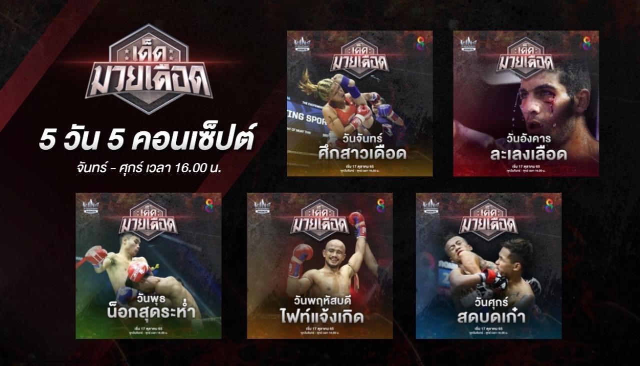 ปิดท้ายด้วยรายการมวยเพื่อตอกย้ำความแข็งแรง “ดูมวยต้องช่อง 8 “ รายการ“เด็ดมวยเดือด” รายการที่เป็นความระทึกใจครั้งใหม่ ที่ทางช่อง 8 ขนมาเอาใจคอมวยโดยเฉพาะ การันตีความมันส์ ด้วยการเป็น “King of Fighting Sports” ว่าเด็ดทุกวัน เดือดทุกธีม เริ่มที่ วันจันทร์ ในธีม “ศึกสาวเดือด” พบกับมวยหญิง สุดระห่ำ ที่มาพร้อมความสวยแบบโหดๆ จนสังเวียนลุกเป็นไฟ ต่อด้วย วันอังคาร ในธีม “ละเลงเดือด” รวมความระห่ำของมวยชาย ที่ติดอาวุธ มาครบมือ ทั้งศอก หมัด เตะฟาดกันแตกยับ จนแฟนๆ ต้องได้เห็นเลือดบนสังเวียน สะใจถึงอารมณ์ ต่อด้วยวันพุธในธีม “น็อกสุดโหด” ชมคู่มวยที่มีการน็อกเอาต์แบบสุดโหด ที่แฟนมวยต้องลุ้นจนแทบหยุดหายใจ มันกันต่อในวันพฤหัสบดี ในธีม “ไฟต์แจ้งเกิด” ที่จะพาแฟนมวยทุกคนไปชมไฟต์แจ้งเกิดของคู่มวยดัง ทั้งไทยและต่างชาติ ว่าเป็นอย่างไร ปิดท้ายที่วันศุกร์ในธีม “สดบดเก๋า” ที่จะพาแฟนมวยไปพบกับคู่ต่อสู้แบบ สด บด เก๋า กับการลุ้นไปกับนักมวยฟอร์มสดที่พร้อมขยี้คู่ชกเก๋าเกมแบบไม่ยั้ง คอมวยนักสู้ เตรียมลุ้นให้สะใจ จนสังเวียนสะเทือน กับทุกความที่สุดของมวยไทยในรายการ “เด็ดมวยเดือด” ทุกวันจันทร์-ศุกร์ เวลา 16.00 น. เริ่มเปิดไฟต์ลั่นระฆังยกแรก (เริ่ม 17 ตุลาคมนี้)