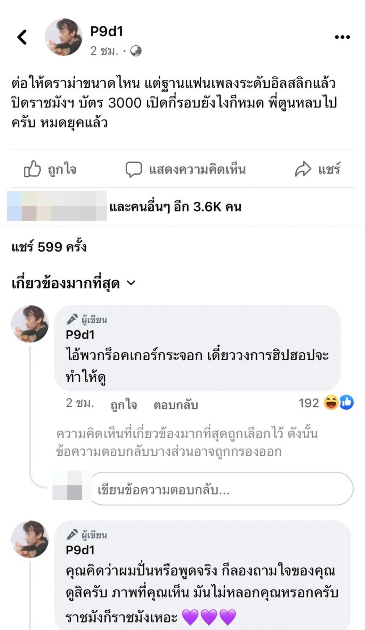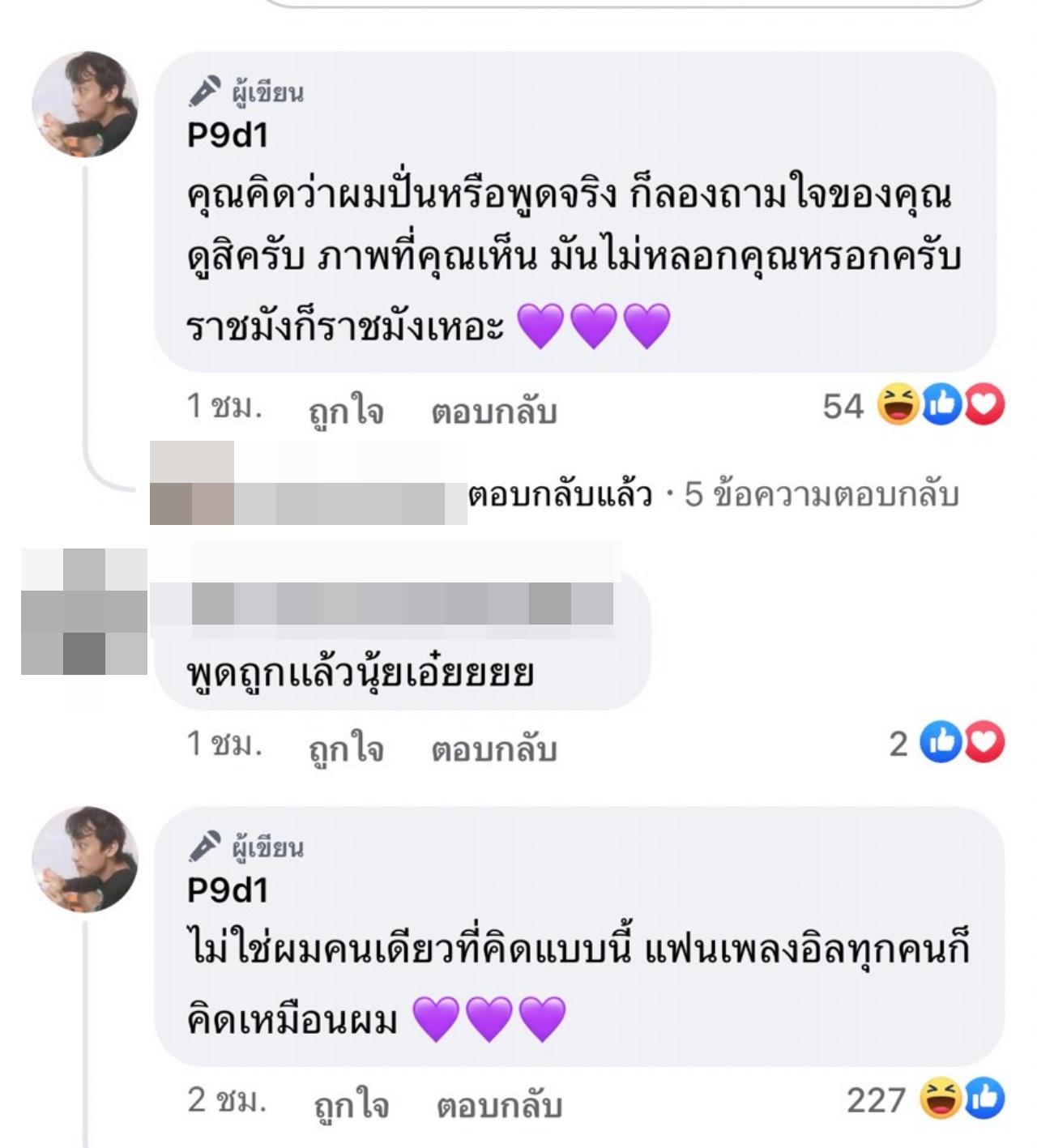 และอีกโพสต์ นุ้ย P9D ยังได้เขียนถึง อิลสลิก ว่า "ต่อให้ดราม่าขนาดไหน แต่ฐานแฟนเพลงระดับอิลสลิกแล้ว ปิดราชมังฯ บัตร 3000 เปิดกี่รอบยังไงก็หมด พี่ตูนหลบไปครับ หมดยุคแล้ว" ซึ่งข้อความนี้ได้ลบออกไปแล้ว.