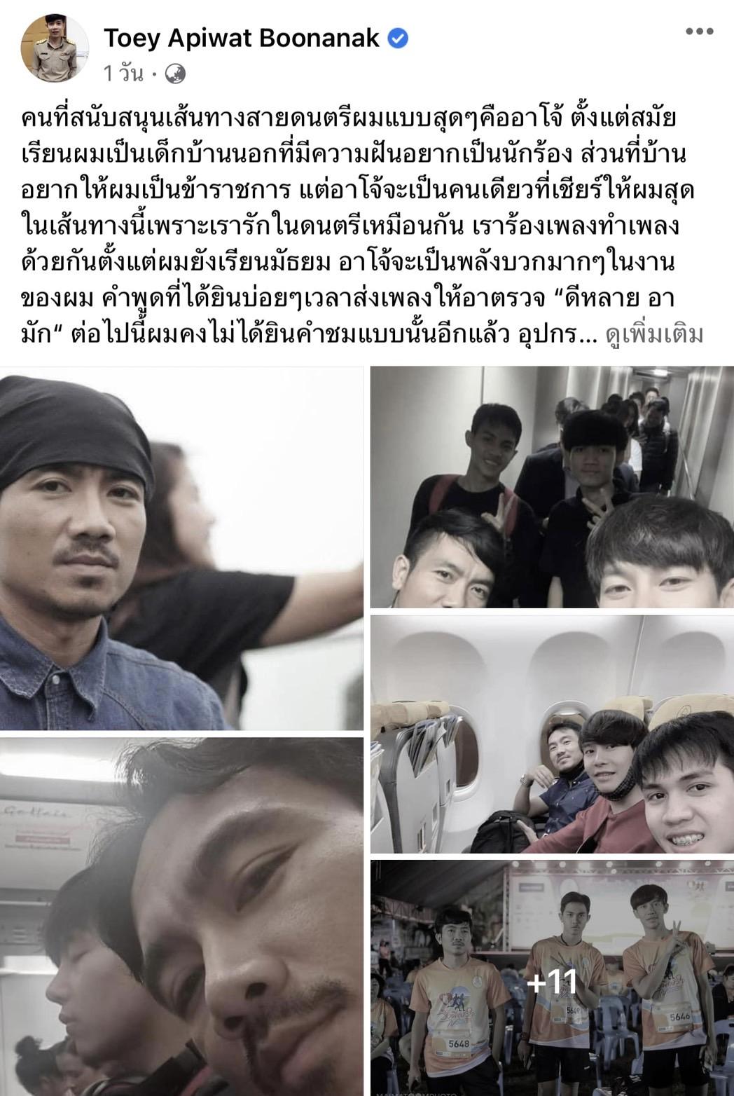 โดยเจ้าตัวระบุข้อความดังกล่าวว่า "คนที่สนับสนุนเส้นทางสายดนตรีผมแบบสุดๆ คืออาโจ้ ตั้งแต่สมัยเรียนผมเป็นเด็กบ้านนอกที่มีความฝันอยากเป็นนักร้อง ส่วนที่บ้านอยากให้ผมเป็นข้าราชการ แต่อาโจ้จะเป็นคนเดียวที่เชียร์ให้ผมสุดในเส้นทางนี้เพราะเรารักในดนตรีเหมือนกัน