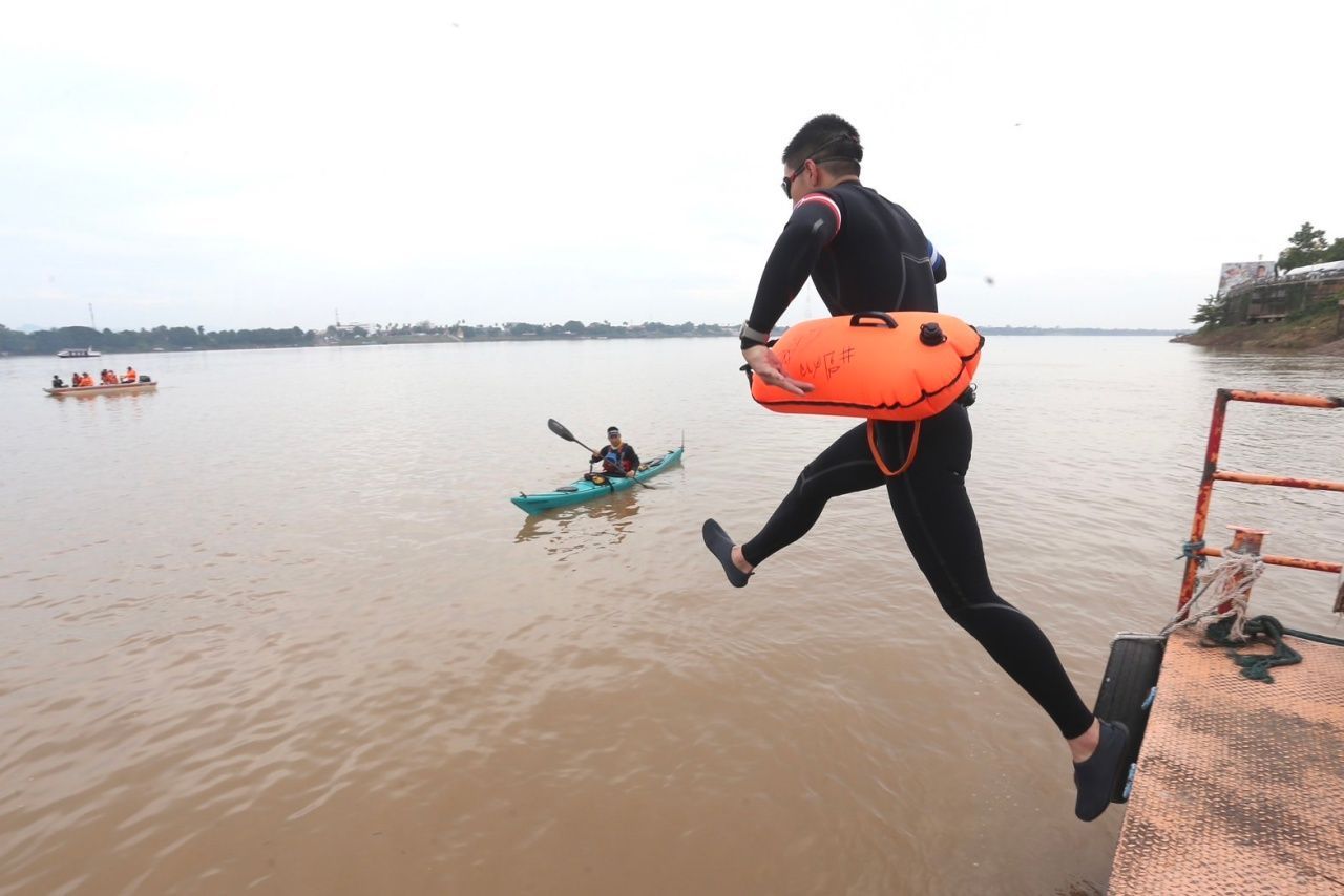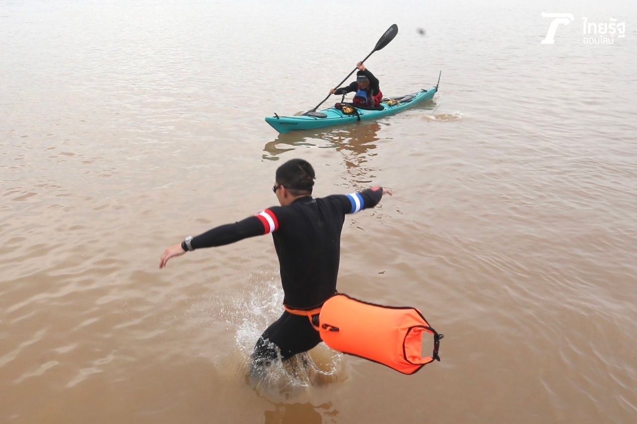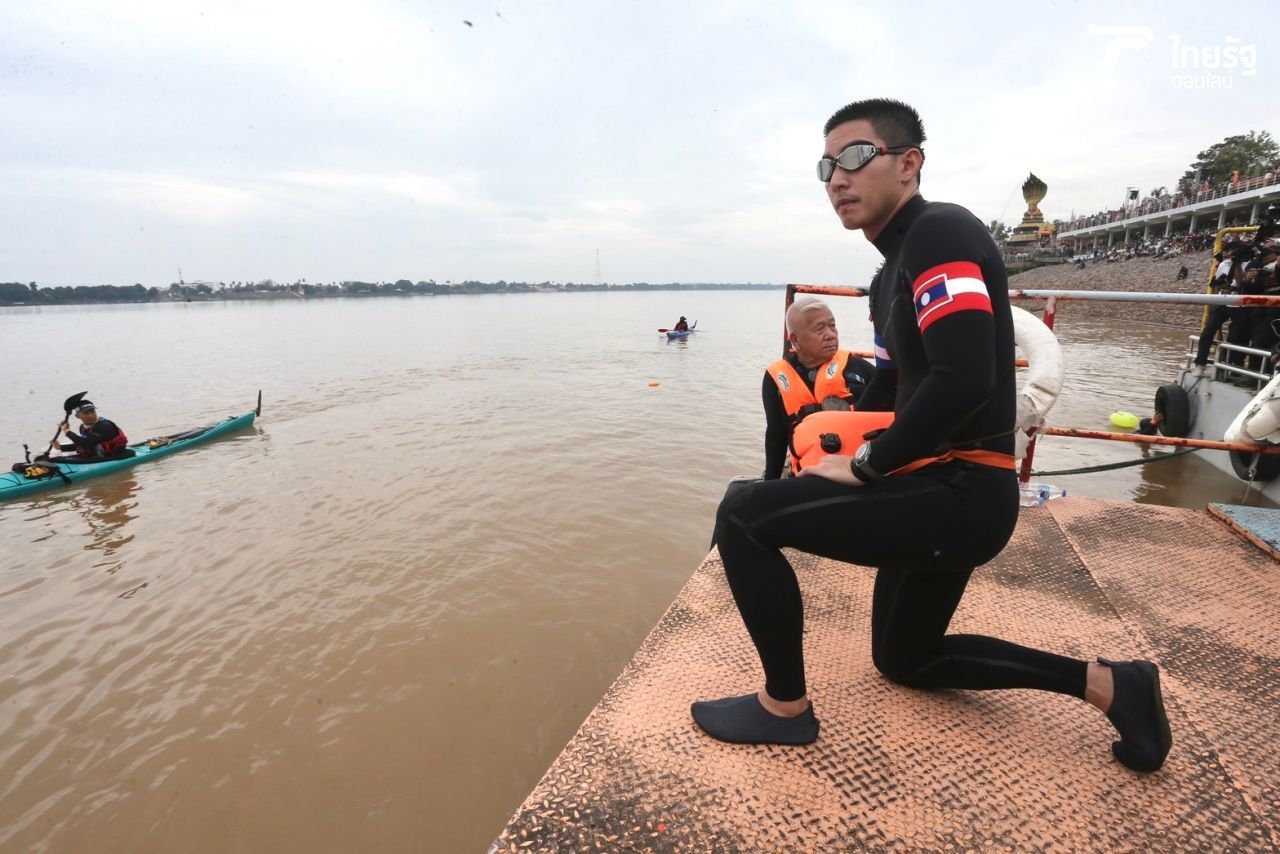 จากนั้น 2 พิธีกร อู๊ด เป็นต่อ และแม็กกี้ จีรโรจน์ หรือ แม็กกี้ ภราดร ชวนแฟนๆ นับถอยหลังให้สัญญาณโตโน่ในการลงว่ายน้ำครั้งนี้ ก่อนที่โตโน่จะกระโดดลงน้ำและเริ่มว่ายน้ำเลาะแม่น้ำโขงไปตามทางที่วางแผนไว้ โดยมีทีมว่ายน้ำว่ายตามประกบด้วย และล่าสุดตอนนี้โตโน่ขึ้นไปที่ท่าวัดกลางเพื่อรับเงินบริจาคจากแฟนๆ ชาวจังหวัดนครพนมด้วยตัวเอง.