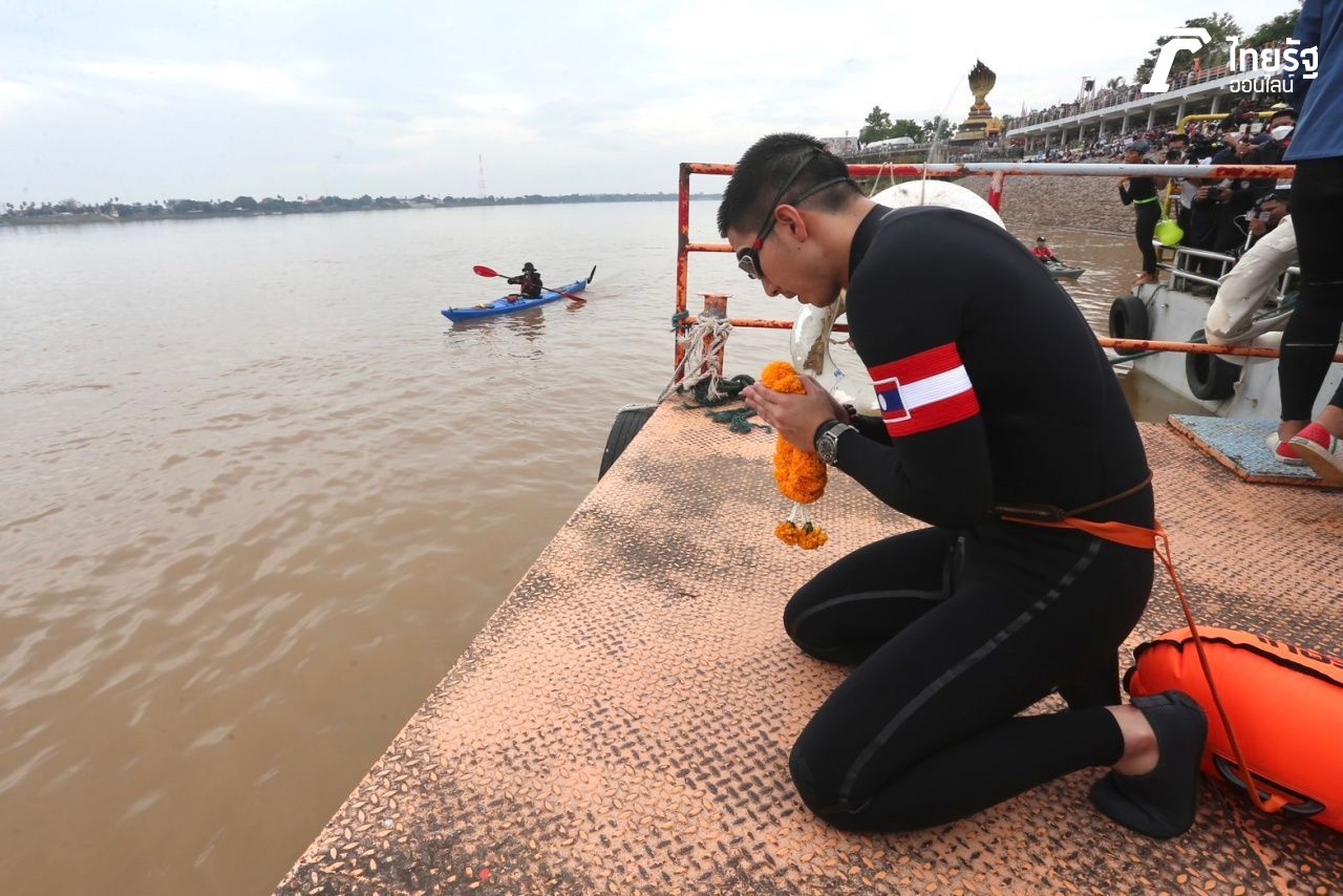 โดยหลังจากเสร็จสิ้นพิธี ณ ลานพญาศรีสัตตนาคราช ล่าสุดเมื่อเวลา 10.09 น. โตโน่ ภาคิน ก็ถือฤกษ์ดังกล่าวลงว่ายน้ำเรียบร้อยแล้ว โดยมี ณิชา ณัฏฐณิชา แฟนสาว และเพื่อนๆ ในวงการบันเทิง พร้อมแฟนคลับต่างมาให้กำลังใจ ท่ามกลางการติดตามทำข่าวของสื่อมวลชนจำนวนมาก ซึ่งก่อนที่จะลงว่ายน้ำก็ทักทายชาว จ.นครพนม ที่มาให้กำลังใจอย่างเนืองแน่น และเข้าไปพูดคุยกับทีมงาน ก่อนที่จะนำพวงมาลัยมาไหว้และทำสมาธิ