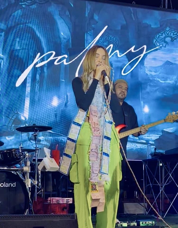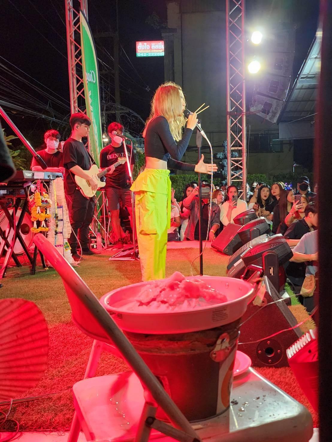 ซึ่งในคอนเสิร์ตล่าสุด ปาล์มมี่ ได้ลงภาพของที่เธอได้และการจุดเตาหมูกระทะบนเวที และของจากแฟนๆ พร้อมแคปชั่นว่า "ปิ้งมันบนเวทีไปเลยละกันค่ะ ขอบพระคุณทุกพวงที่หอบหิ้วมามอบให้มี่นะคะ ทุกชิ้นขึ้นรถไปกับมี่ต่อที่ จ.เลย พรุ่งนี้ค่ะ"