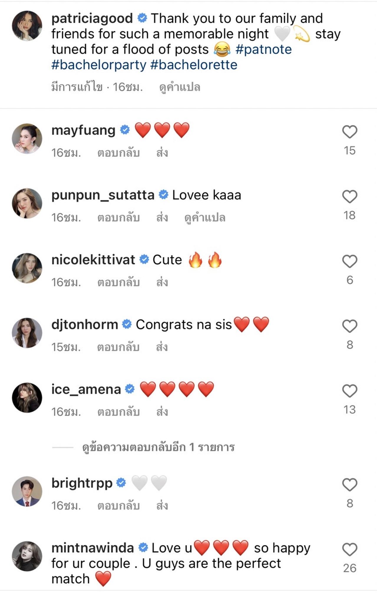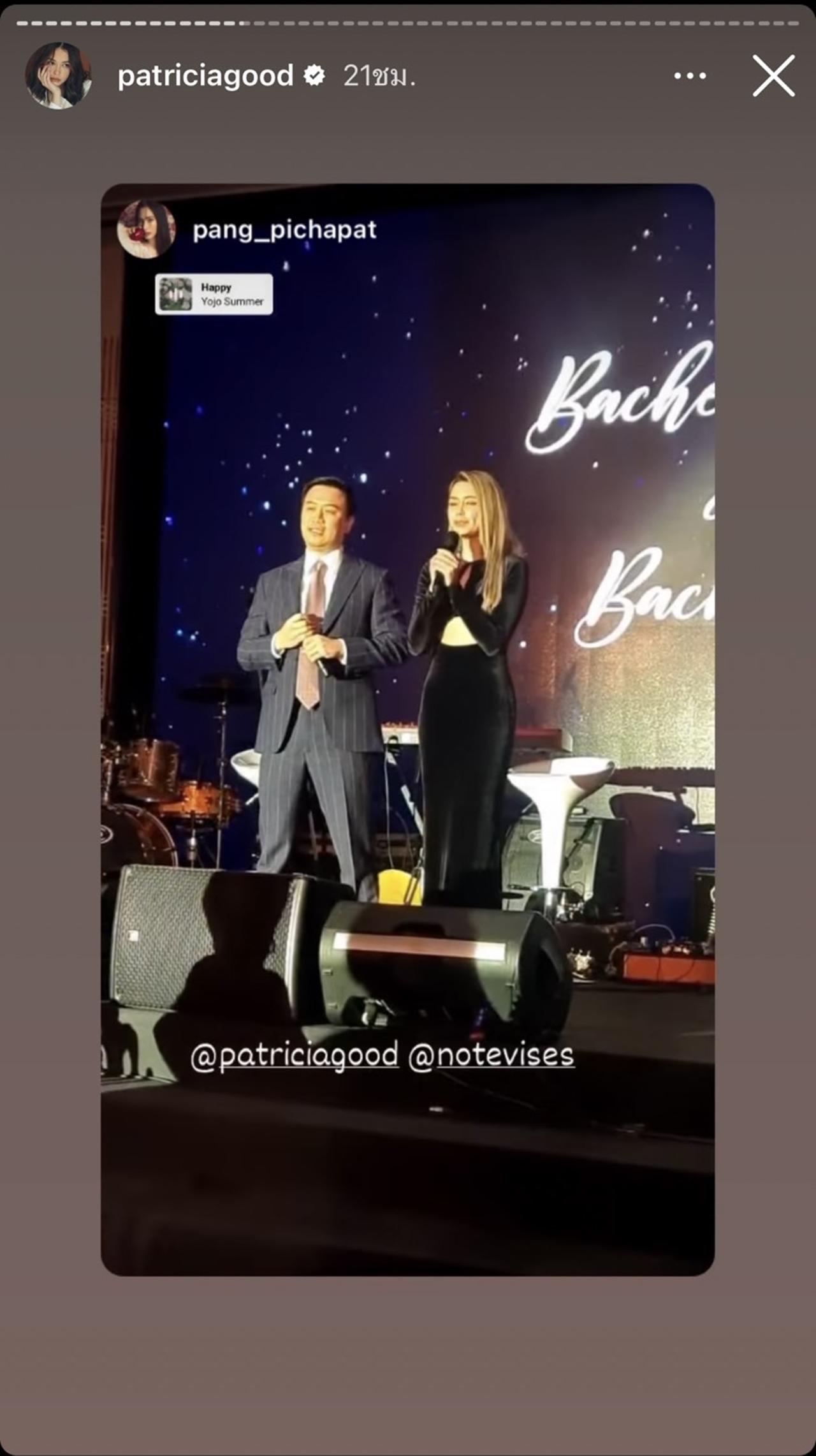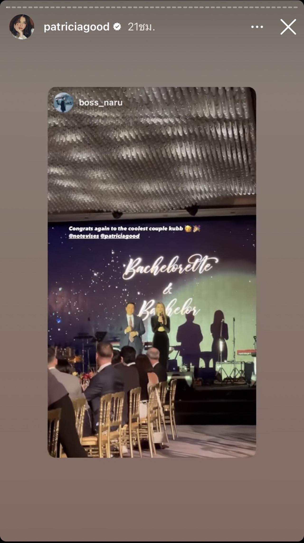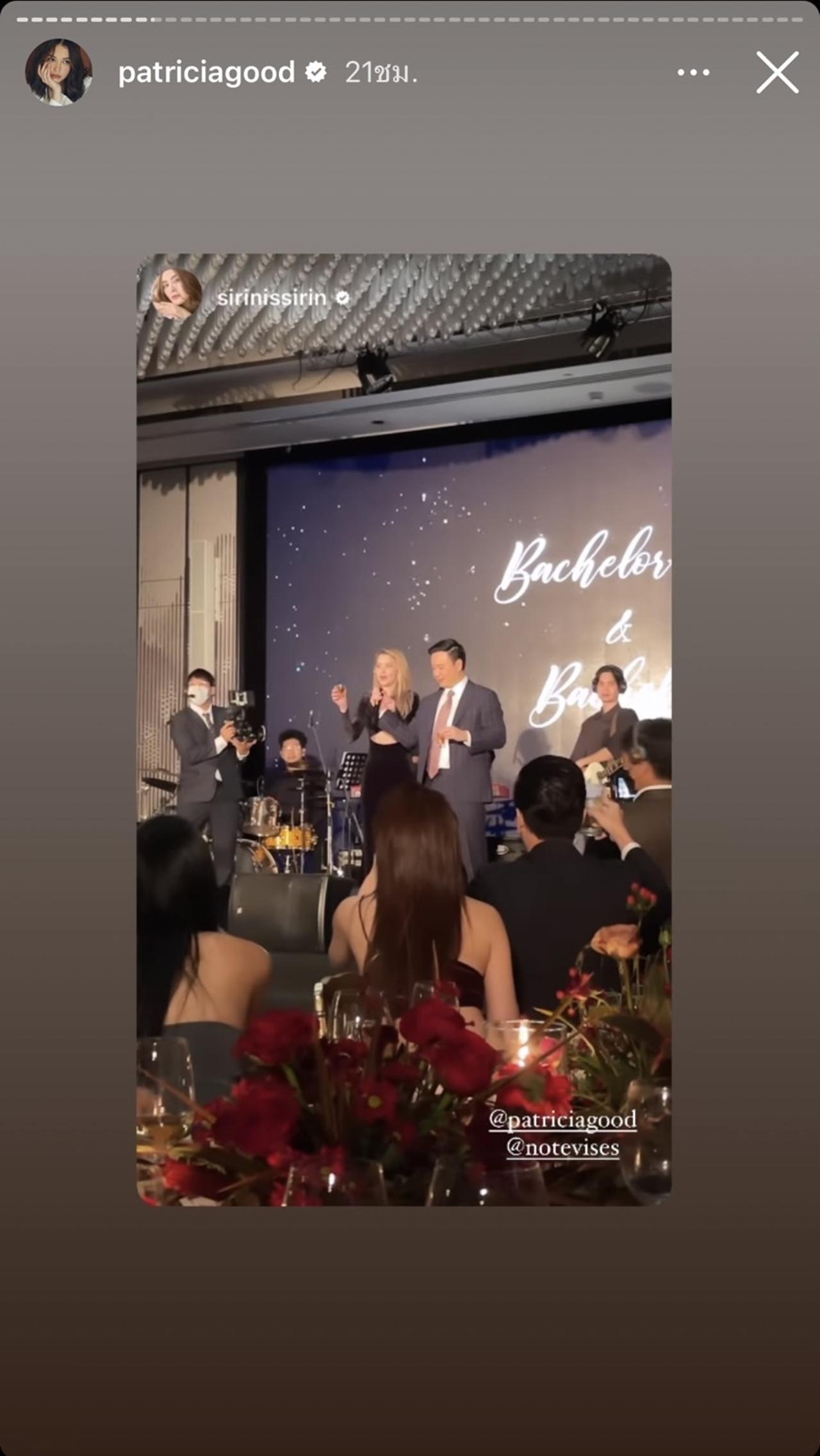 ซึ่งงานปาร์ตี้สละโสดของโน้ตและแพท มาในธีมสีดำสุดหรูหรา ว่าที่เจ้าบ่าวมาในชุดสูทสีน้ำเงินเข้มตัดลายทาง กับเนกไทลายจุด ส่วนว่าที่เจ้าสาวก็สวยมากจริงๆ มาในชุดราตรียาวเข้ารูปสีดำแหวกเว้าช่วงอกกับเอว ส่วนบรรยากาศของงานนั้นจัดขึ้นแบบเรียบง่ายแต่หรูมาก โมเมนต์อบอุ่นของว่าที่เจ้าบ่าว เจ้าสาว และบรรดาเพื่อนพ้องคนสนิทมาร่วมในงานทั้งสนุกสนานเฮฮา และซึ้งจนว่าที่เจ้าสาวน้ำตาไหล