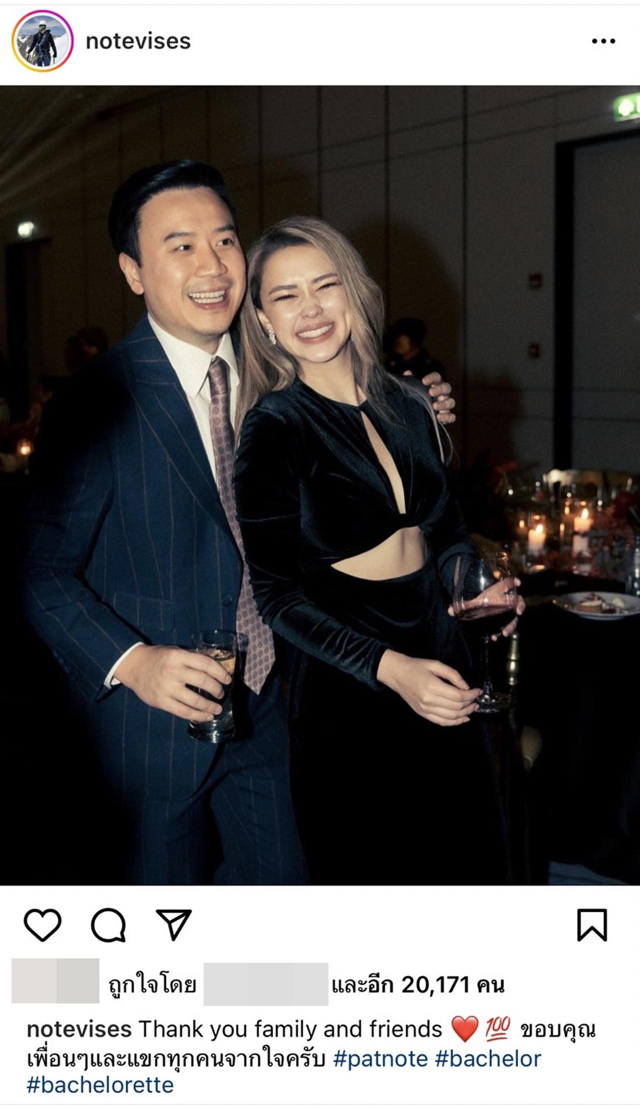 สำหรับ โน้ตและแพท นั้น ทั้งคู่คบกันมา 3 ปีกว่า ก่อนที่ฝ่ายชายจะทำเซอร์ไพรส์ของแฟนสาวแต่งงานเมื่อวันที่ 2 มิ.ย. 2565 ที่ประเทศอังกฤษ.
