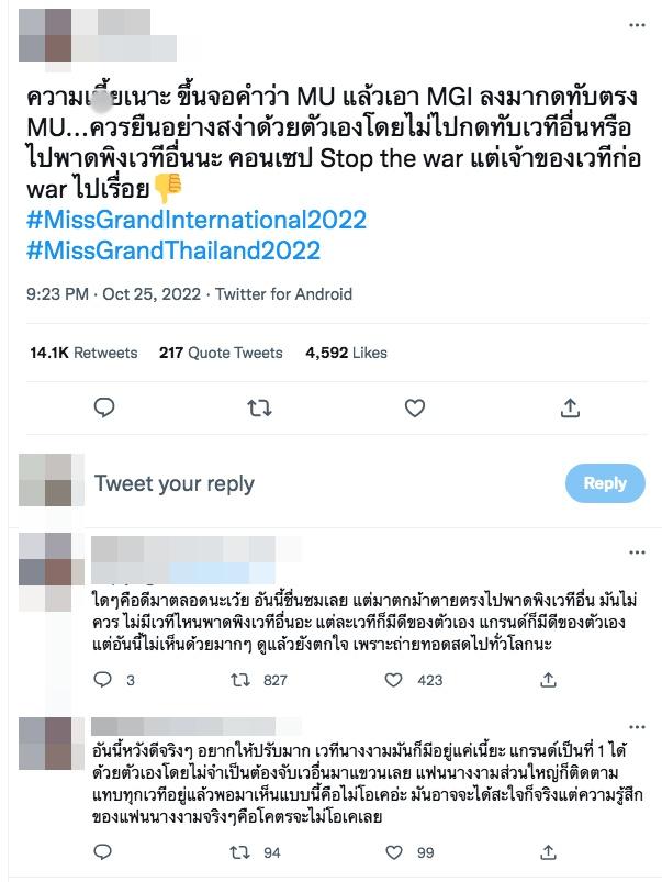 ทำให้เกิดกระแสวิจารณ์อย่างหนัก อาทิ แรงมาก, เรียกร้องให้ Stop the War ให้ส่งสารไปถึง ปธน.ปูติน ของรัสเซีย แต่ทำกราฟิก MU (อีโมจิระเบิด) MGI โอ๊ย...บ้งมาก คงแค้นมากซินะ ปะป๋า, ความเ-ี้ยเนาะ ขึ้นจอคำว่า MU แล้วเอา MGI ลงมากดทับตรง MU...ควรยืนอย่างสง่าด้วยตัวเองโดยไม่ไปกดทับเวทีอื่น หรือไปพาดพิงเวทีอื่นนะ คอนเซปต์ Stop the war แต่เจ้าของเวทีก่อ war ไปเรื่อย ฯลฯ