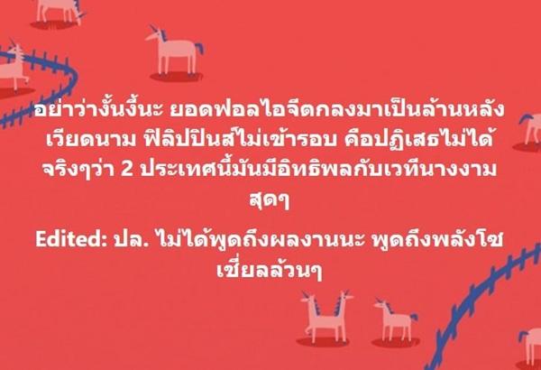 แต่ก็มีบางส่วนมองว่า การที่ยอดฟอลโลเวอร์ในไอจีมิสแกรนด์ฯ ลดลง เป็นเพราะทางเวทีมิสแกรนด์ฯ ให้คนโหวตผ่านไอจี ทำให้มีคนติดตามเป็นจำนวนมาก พอหมดการประกวดแล้ว คนก็เลยกดอันฟอลโลว์ไอจีไป.