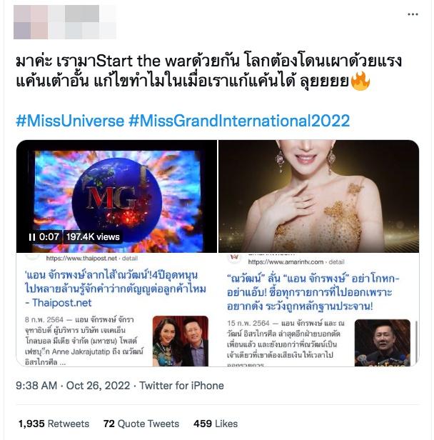 แม้การประกวดเวทีนางงาม มิสแกรนด์อินเตอร์เนชั่นแนล 2022 (Miss Grand International 2022) จะจบลงไปแล้วเมื่อค่ำคืนวันที่ 25 ต.ค. 2565 ที่ผ่านมา ณ กรุงจาการ์ตา ประเทศอินโดนีเซีย โดยผู้ที่ได้รับมงกุฎทองก็คือ อิสเบลล่า เมนิน (Isabella Menin) มิสแกรนด์บราซิล ส่วน อิงฟ้า วราหะ มิสแกรนด์ไทยแลนด์ คว้ารางวัลรองชนะเลิศอันดับ 1