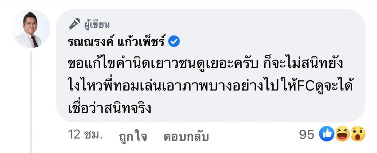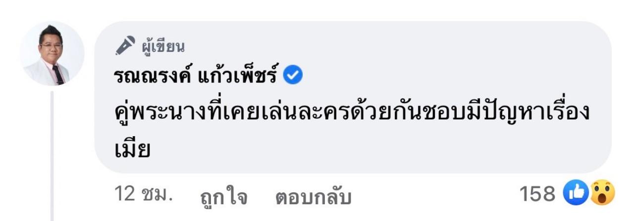 นอกจากนี้ ทนายรณณรงค์ ยังคอมเมนต์บอกใบ้เพิ่มเติมใต้โพสต์ดังกล่าวอีกด้วยว่าเป็น “คู่พระนางที่เคยเล่นละครด้วยกันชอบมีปัญหาเรื่องเมีย” และ "ขอแก้ไขคำนิดเยาวชนดูเยอะครับ ก็จะไม่สนิทยังไงไหว พี่ทอมเล่นเอาภาพบางอย่างไปให้ FC ดูจะได้เชื่อว่าสนิทจริง" งานนี้ก็ทำเอาชาวเน็ตต่างพากันสงสัยว่านางเอกระดับตำนานของสาวหล่อคนนั้นคือใครกัน ชนิดรอฟังคำตอบกันแทบไม่ได้หลับไม่ได้นอนเลยทีเดียว