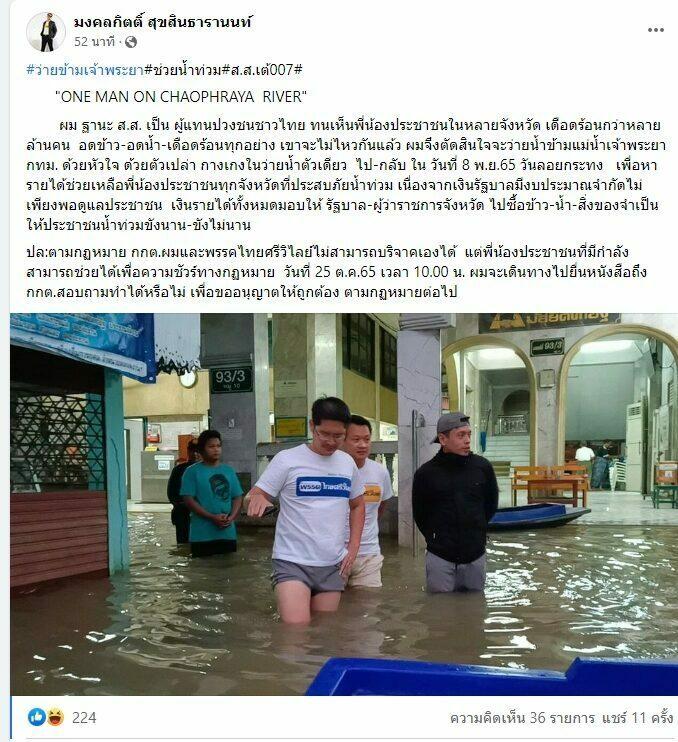 เป็นประเด็นโต้กันผ่านสื่อไปมาซะแล้ว สำหรับกรณีที่ เต้ มงคลกิตติ์ สุขสินธารานนท์ ส.ส.บัญชีรายชื่อ และหัวหน้าพรรคไทยศรีวิไลย์ ประกาศเตรียมว่ายน้ำข้ามแม่น้ำเจ้าพระยาด้วยตัวเปล่าและกางเกงในว่ายน้ำตัวเดียวแบบไปกลับ ในวันที่ 8 พ.ย. 2565 ซึ่งตรงกับวันลอยกระทง เพื่อหารายได้ช่วยเหลือประชาชนทุกจังหวัดที่ประสบภัยน้ำท่วม