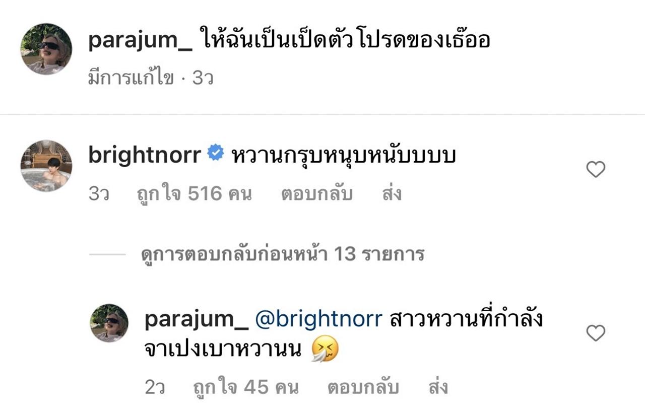 หลังจากที่ก่อนหน้านี้พระเอกดาวรุ่นก็ได้ไปคอมเมนต์แซวฝ่ายหญิงผ่านสื่อจนทำเอาแฟนๆ กรี๊ดแทบเป็นลมในความหวานหยดของทั้งคู่มาแล้ว