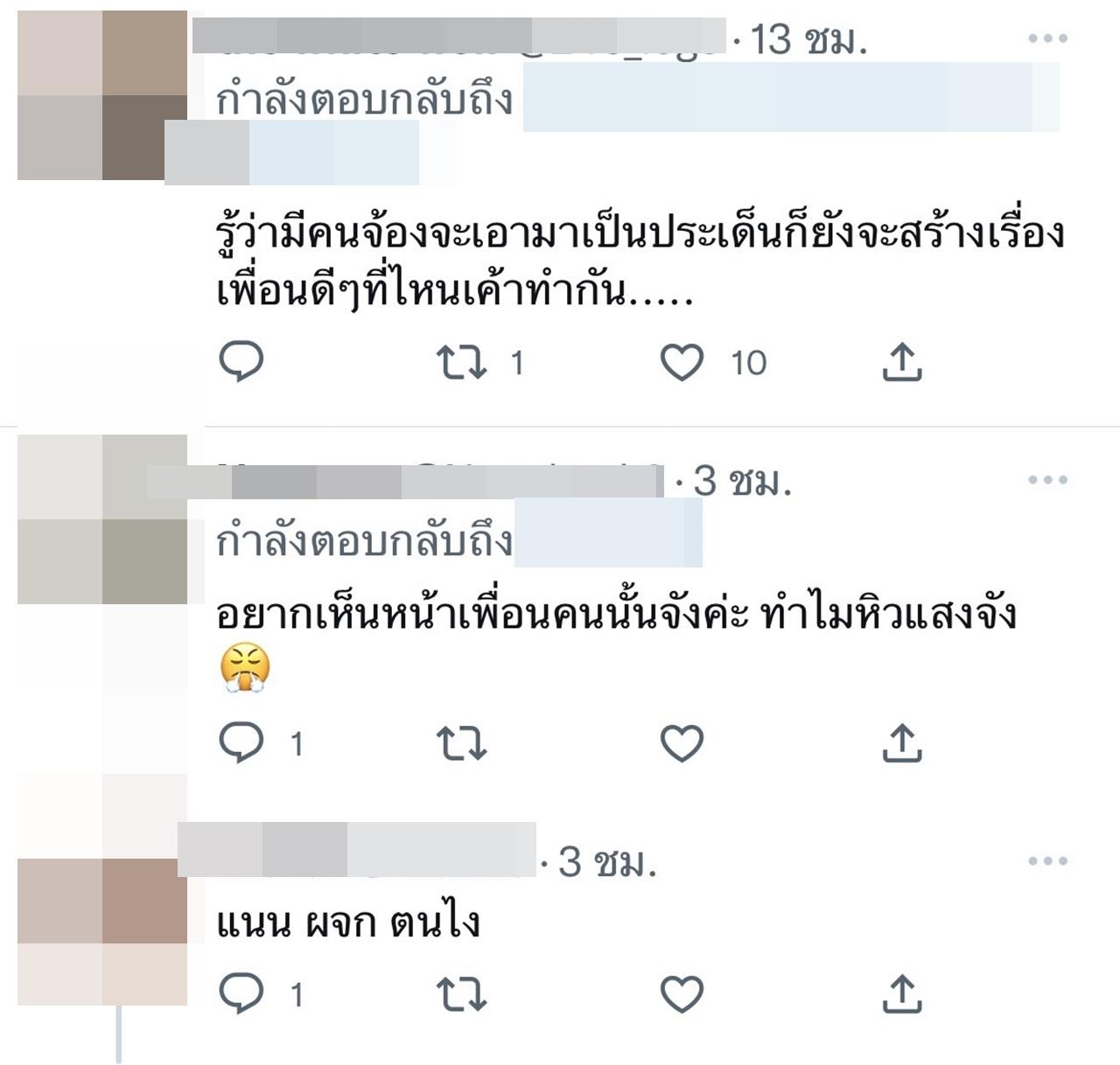 เพื่อนของบุคคลที่สามไม่น่ารักเลยจริงๆ การทำแบบนั้นมีเจตนา ด้วยรู้น้อยก็ดี ไม่รู้เลยเป็นไปไม่ได้ มาลงสื่อโซเชียล ทั้งๆ ที่รู้กระแสว่าเป็นยังไง เพื่อนไม่น่ารักเอามากๆ เจตนาครั้งนี้คือความตั้งใจ ถ้าไม่ตั้งใจ นี่ไม่เชื่อ คุณอัพลงสตอรี่ และมีการสร้างแอคทวิตมาใหม่ เพื่อนเล่นประเด็นนี้"
