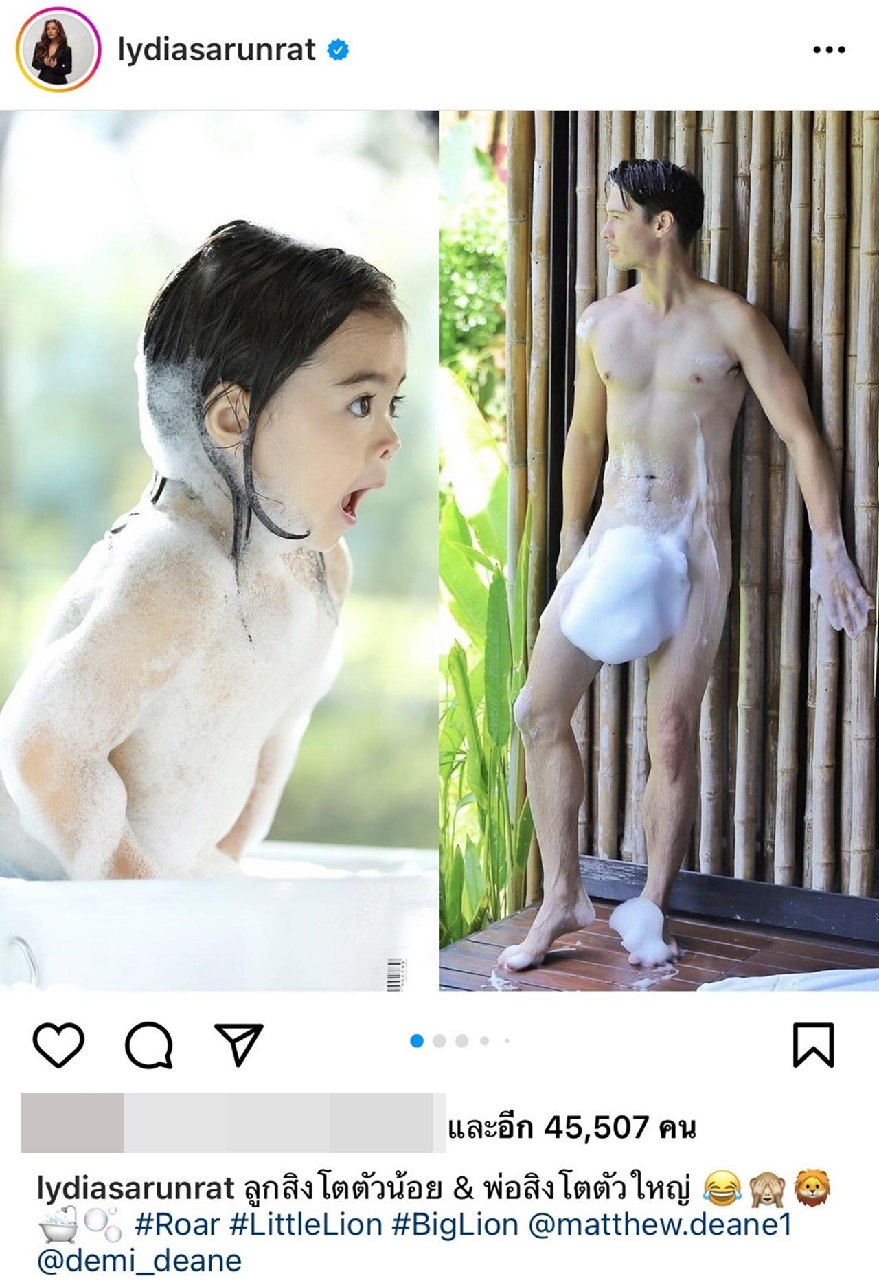ล่าสุด ลีเดีย ศรัณย์รัชต์ ก็ได้ทำการแกงสามีแบบหม้อใหญ่ ด้วยการโพสต์รูปที่ทำเอาแฟนๆ เห็นแล้วต้องใจสั่น กับภาพของ แมทธิว ที่มีแค่ฟองสบู่ปกปิดร่างกาย และลูกสาวสุดที่รัก น้องเดมี่ พร้อมแคปชั่นน่ารักๆ ว่า "ลูกสิงโตตัวน้อย & พ่อสิงโตตัวใหญ่"