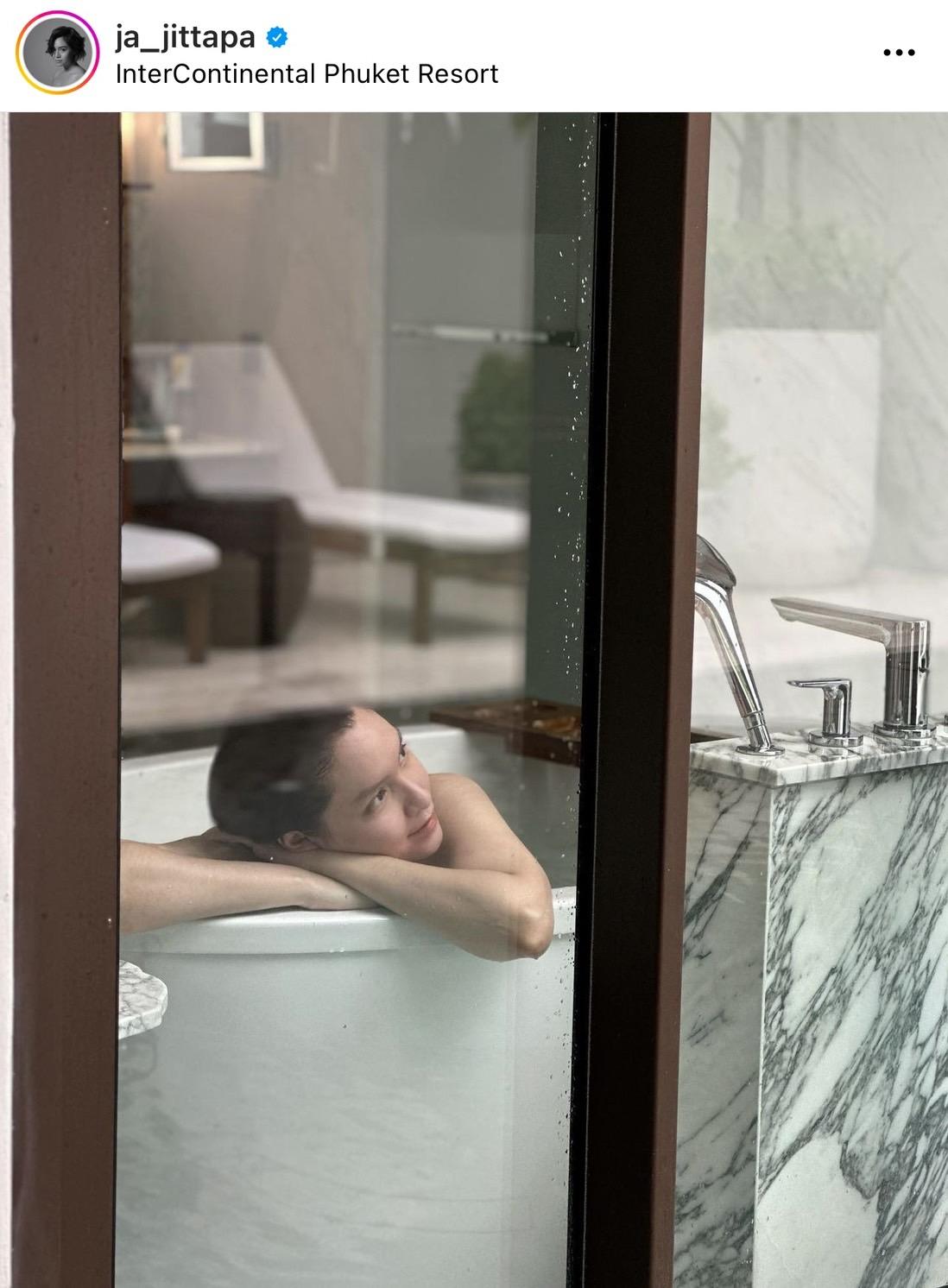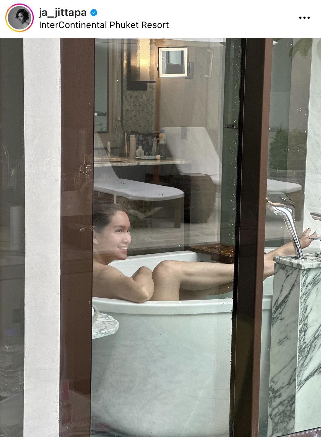 อย่างล่าสุดสาว จ๊ะ ได้ออกมาเสิร์ฟชอตเด็ดอวดความแซ่บแบบชิลๆ ในอ่างอาบน้ำมาทำให้ใจสั่นอีกด้วย โดยเธอก็ได้สลัดผ้าลงอ่าง เผยให้ได้เห็นความเซ็กซี่และเผยผิวขาวออร่า พร้อมกับโพสท่าสุดปังลงอินสตาแกรมส่วนตัว พร้อมเขียนแคปชั่นบอกเอาไว้ว่า "ตั่งต่างระหว่างรอฝน"
