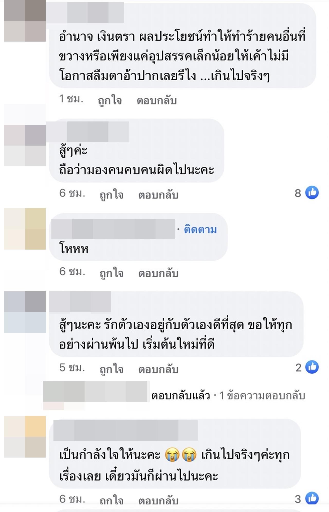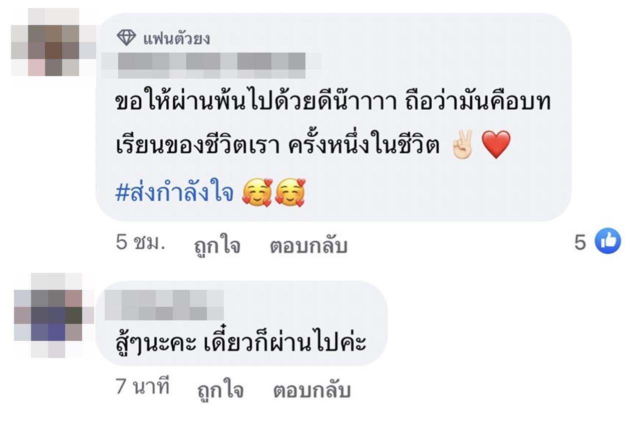 งานนี้หลายคนที่ติดตามก็ได้เข้ามาคอมเมนต์ ส่วนมากจะให้กำลังใจกับ ติ๊นา โดยบอกว่า ขอให้ผ่านพ้นไปด้วยดีน้าาาา ถือว่ามันคือบทเรียนของชีวิตเรา ครั้งหนึ่งในชีวิต #ส่งกำลังใจ, สู้ๆ นะคะ เดี๋ยวก็ผ่านไปค่ะ, สู้ๆค่ะ ถือว่ามองคน คบคนผิดไปนะคะ, เป็นกำลังใจให้นะคะ สู้สู้ค่ะ, เริ่มต้นใหม่น้าคนเก่ง อะไรที่ไม่ควรไปยุ่ง ก็อยู่น่ารักๆ ของเราไปดีกว่า, เป็นกำลังใจให้นะคะ เกินไปจริงๆ ค่ะทุกเรื่องเลย เดี๋ยวมันก็ผ่านไปนะคะ.