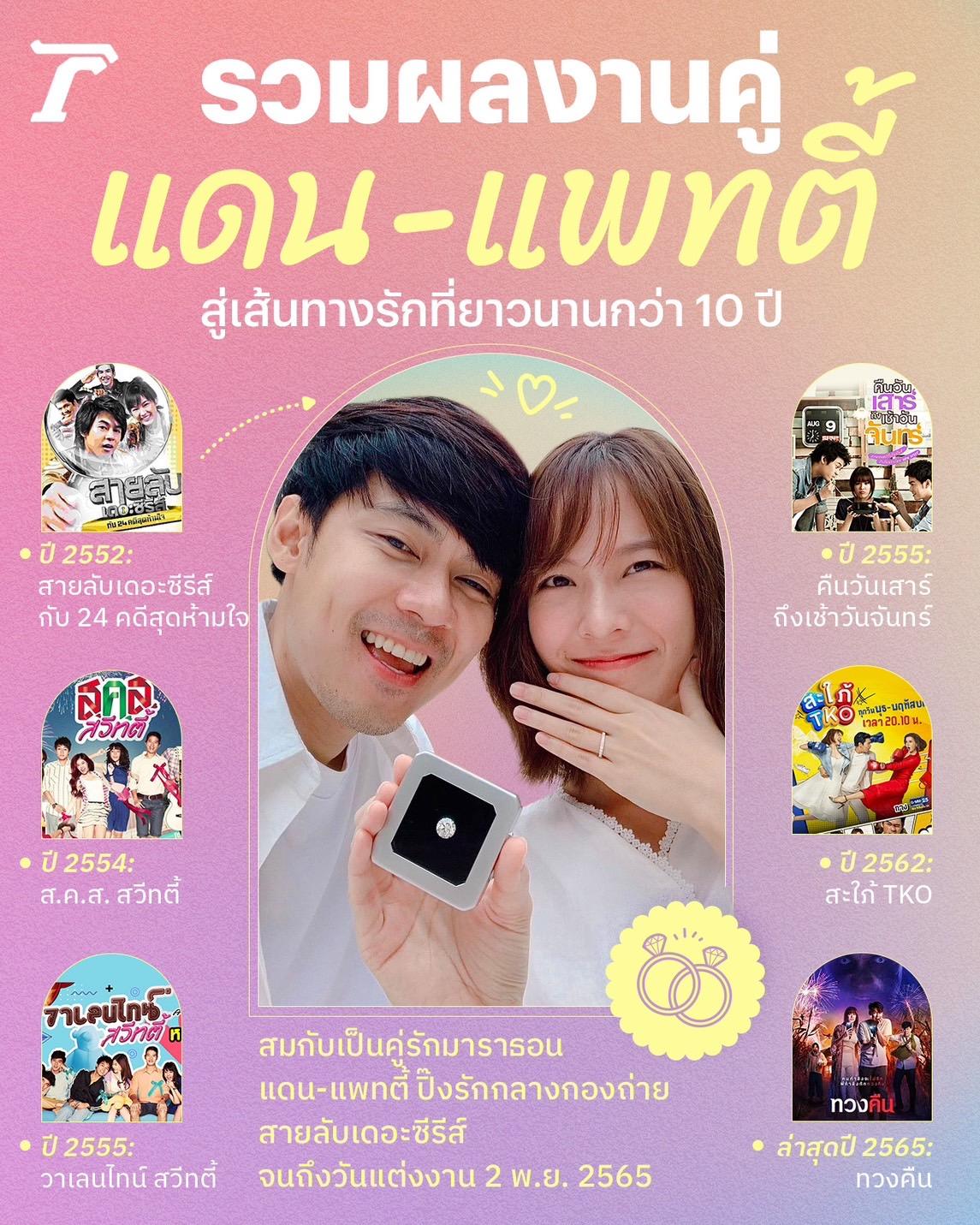 เมื่อวันที่ 13 กันยายน 2565 ที่ผ่านมา ทั้งสองได้โพสต์ภาพคู่ โดยมีสาว แพทตี้ สวมแหวนที่นิ้วนางข้างซ้ายลงในอินสตาแกรมส่วนตัว พร้อมแคปชั่น "แค่ใจหนึ่งใจที่เรียกว่าเธอ ก็เพียงพอแล้วหัวใจ youre my one my only my last และ ถึงวันนี้แล้วหรอเนี่ย พร้อมแฮซแท็ก #แต่งค่ะ" ซึ่งก็มีเพื่อนๆ ทั้งในวงการ นอกวงการ และแฟนคลับร่วมแสดงความยินกับรักครั้งนี้อย่างล้นหลาม