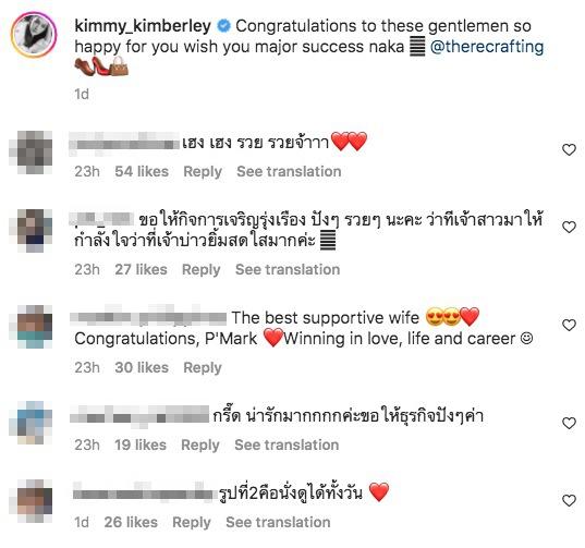 หลังจากนั้นต่างมีเเฟนคลับเข้ามาเเสดงความยินดีมากมาย เช่น "ขอให้กิจการเจริญรุ่งเรือง ปังๆ รวยๆ นะคะ ว่าที่เจ้าสาวมาให้กำลังใจว่าที่เจ้าบ่าวยิ้มสดใสมากค่ะ, กรี๊ด น่ารักมากกกกค่ะขอให้ธุรกิจปังๆค่า, The best supportive wife Congratulations, P'Mark Winning in love, life and career, น่ารักมากที่สุดค่ะ ขอให้กิจการรุ่งเรืองเฮงๆ รวยๆ นะคะพี่หมากน้องคิม" เป็นต้น.