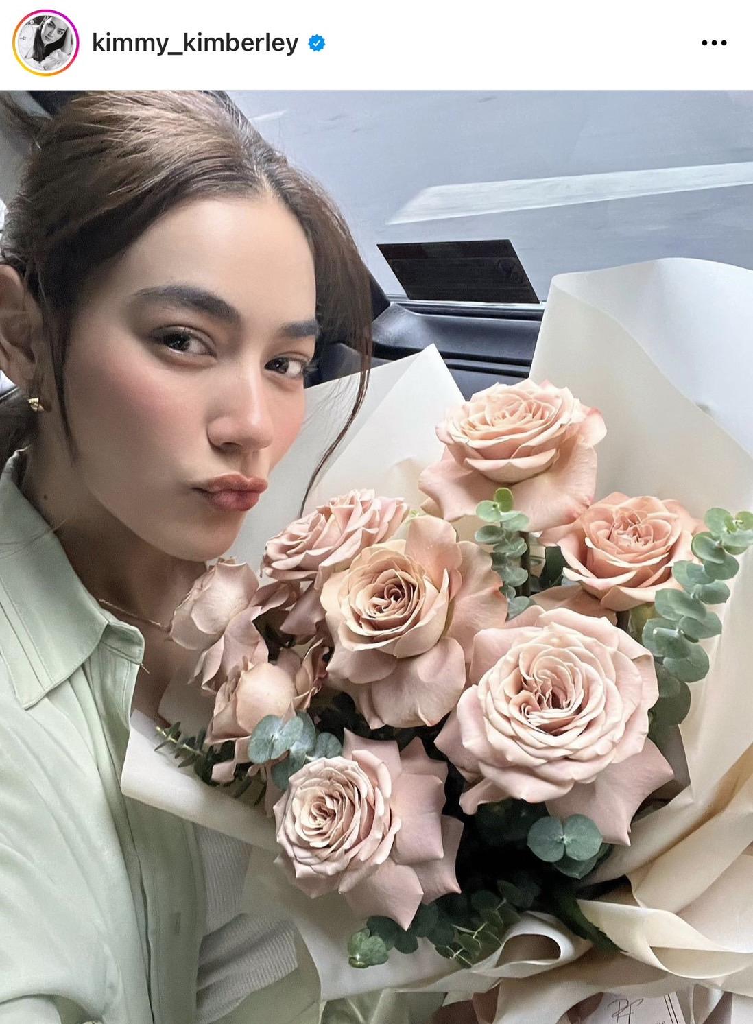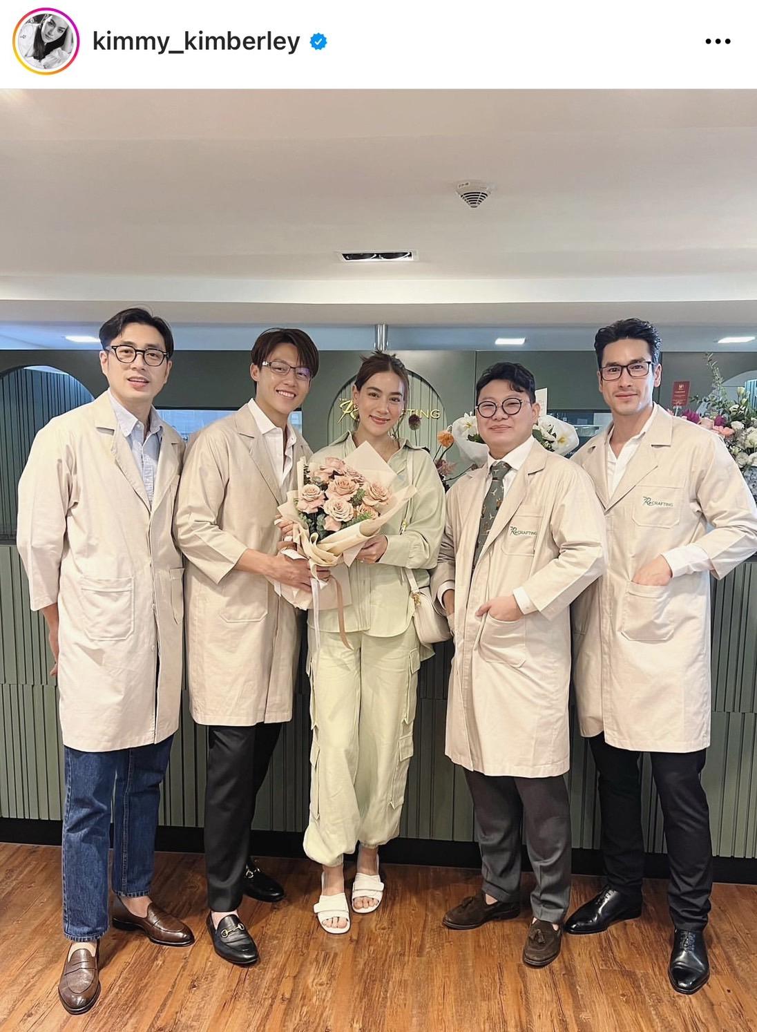 ด้านสาว คิมเบอร์ลี่ ได้โพสต์ภาพหอบช่อดอกไม้ช่อโตมาให้ฝ่ายชาย พร้อมระบุเเคปชั่นว่า "Congratulations to these gentlemen so happy for you wish you major success naka"