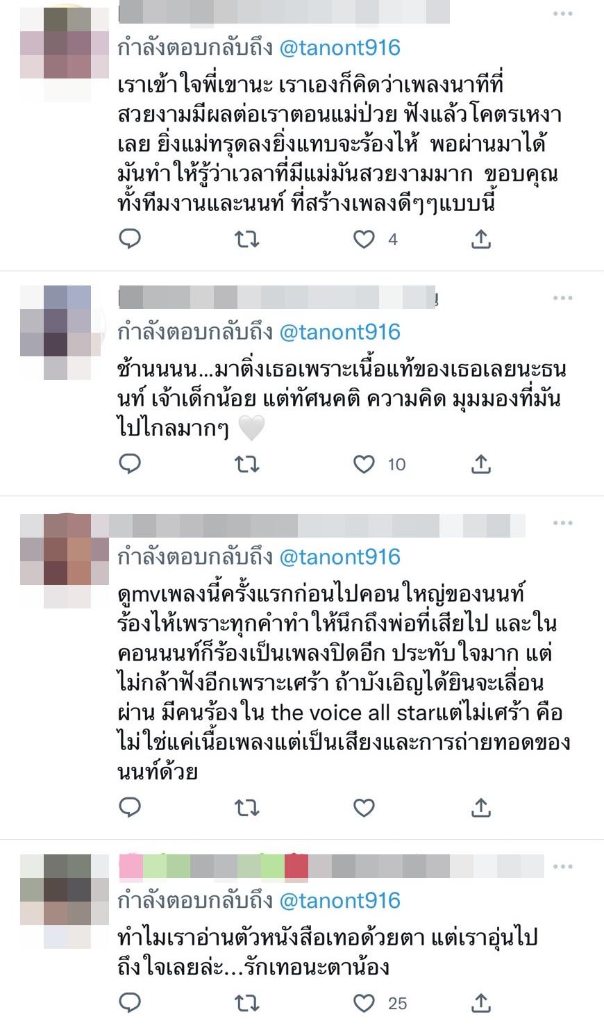งานนี้ทำเอาชาวโซเชียลแห่รีทวีตหลายพันครั้ง พร้อมทั้งแสดงความคิดเห็น อาทิ พี่นนท์แงง น่ารักจัง ทุกการ work ของพี่นนท์และทีมงานกับการสร้างเพลงนี้มันมีความหมายกับคนฟังมากจริงๆ, ช้านนนน…มาติ่งเธอเพราะเนื้อแท้ของเธอเลยนะธนนท์ เจ้าเด็กน้อย แต่ทัศนคติ ความคิด มุมมองที่มันไปไกลมากๆ, ฟังเพลงนี้ทีไร ทำให้คิดถึงแม่ที่อยู่บนสวรรค์ทุกครั้งเลย เพราะทุกช่วงเวลาเหล่านั้น เป็น “ทุกนาทีที่สวยงาม” จริงๆ ขอบคุณนนท์ด้วยที่ถ่ายทอดออกมาได้สุดจริงๆ ฯลฯ