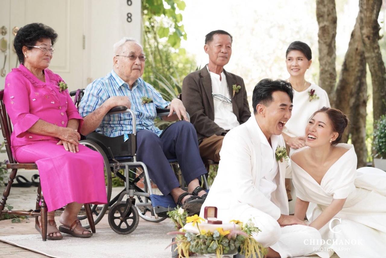 เช้านี้ (5 พ.ย. 2565) โดยเมื่อเวลา 07:00 น. มีการประกอบพิธีสงฆ์ เวลา 08:09 น. มีพิธีสวมแหวน และในเวลา 09:45 น. ตัดเค้กและสังสรรค์ในโรงนา มีเพียงครอบครัว เพื่อนสนิทของทั้งสองฝ่าย รวมถึงคนในวงการบันเทิง ดุ๊ก ภาณุเดช พร้อมด้วย โตโน่ ภาคิน ที่ควง ณิชา ณัฏฐณิชา ซึ่งเป็นรุ่นน้องร่วมโครงการ One Man & The River ตั้งใจมาร่วมเป็นเกียรติในงาน โดย แหม่ม สุริวิภา เป็นพิธีกร และน้องฉัตร เนรมิต ความสวยหล่อให้บ่าวสาว ซึ่งบรรยากาศเป็นไปอย่างเรียบง่ายสุดอบอุ่น