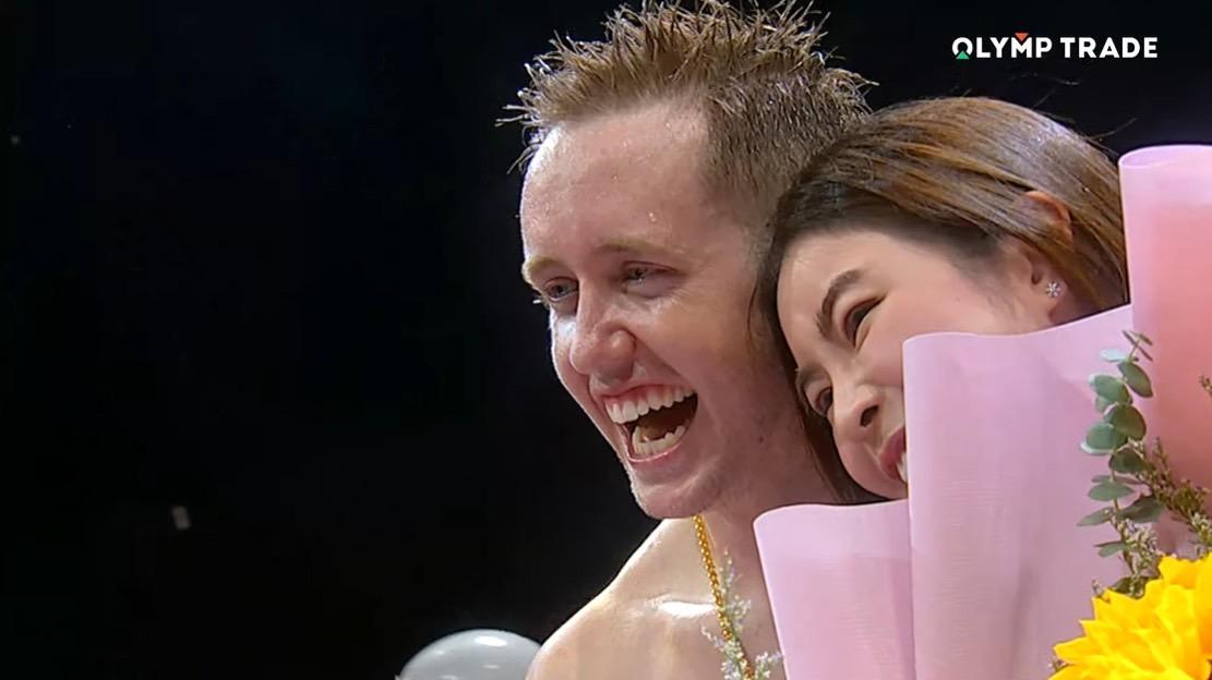 เนท : ตอนนี้ผมสะสมแต้มมาหกแสนห้าหมื่นแต้มแล้ว และน้องบอกว่าวันหนึ่งถึงหนึ่งล้านจะยอมเป็นแฟนกับพี่ก็เลยอยากจะถามว่าพี่ชกชนะวันนี้ หนูจะเพิ่มสามแสนห้าหมื่นแต้มให้พี่หรือเปล่า (เสียงเชียร์ของทุกคนในฮอลล์)
