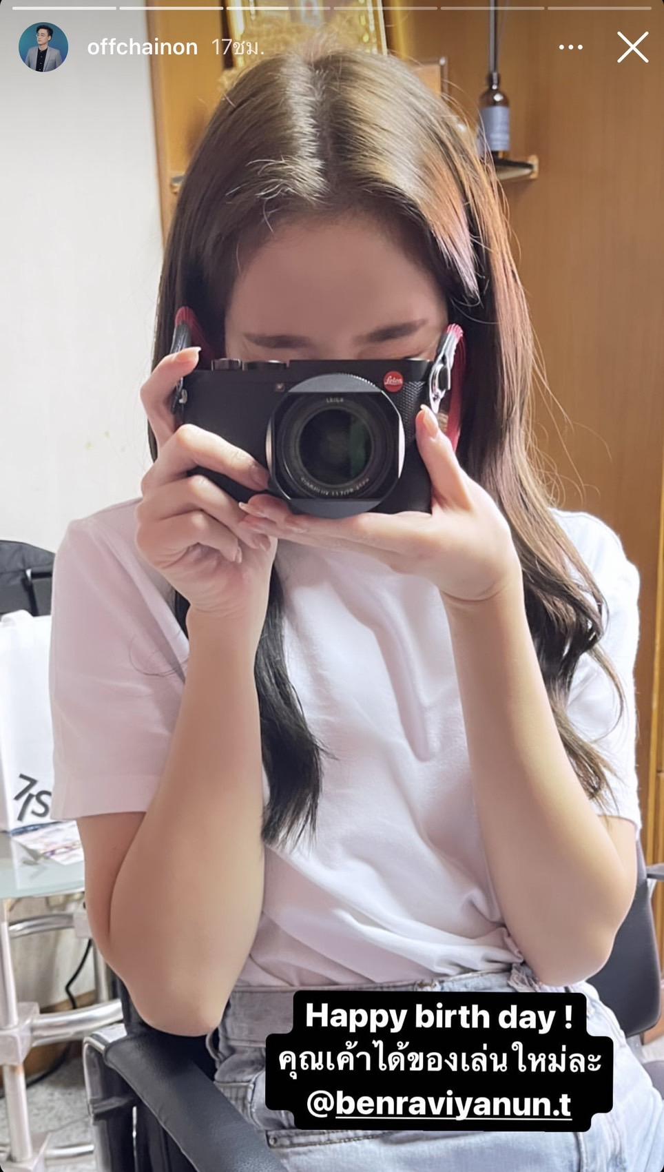 โดยล่าสุดหนุ่ม อ๊อฟ ได้ออกมาโพสต์ภาพอวยพรวันเกิดสาว เบญ ด้วยรูปที่เธอนั้นกำลังถือกล้องใหม่ที่ฝ่ายชายซื้อให้เป็นของขวัญวันเกิด พ้อมกับเขียนแคปชั่นว่า "Happy birth day ! คุณเค้าได้ของเล่นใหม่ละ @benraviyanun.t" ถือเป็นการเปิดตัวที่ชวนร้องว้าวเลยทีเดียว ทำเอาแฟนคลับร้องกรี๊ดกันยกใหญ่.